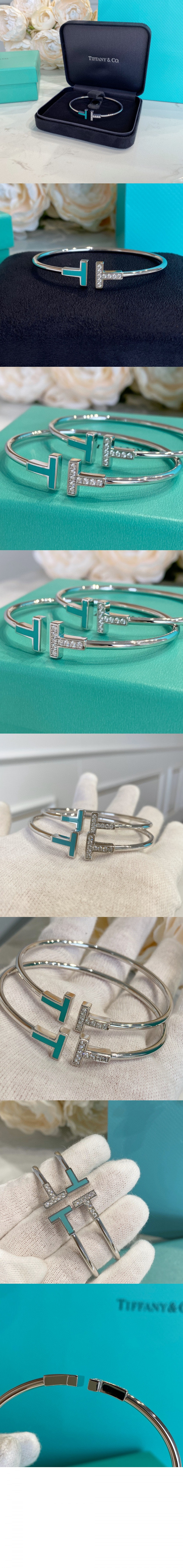티파니앤코 다이아몬드 및 터쿼이즈 와이어 브레이슬릿