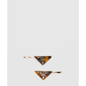 프라다 장식이 있는 브라스 헤어 클립 1IF098