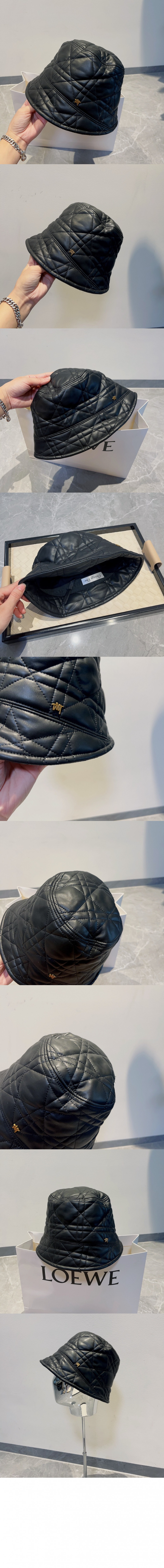 디올 가죽 체크 버킷햇 3U1PD > 여자