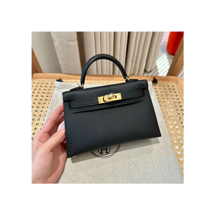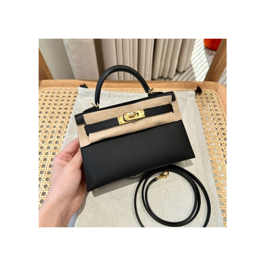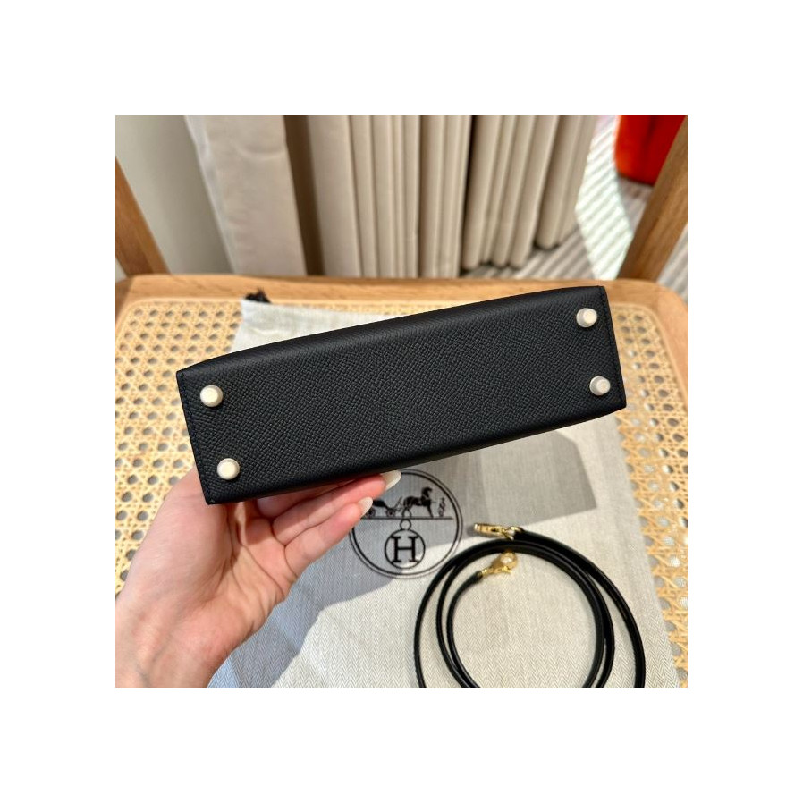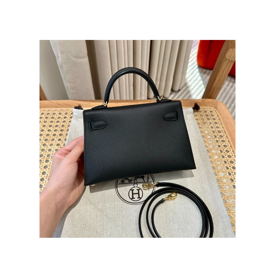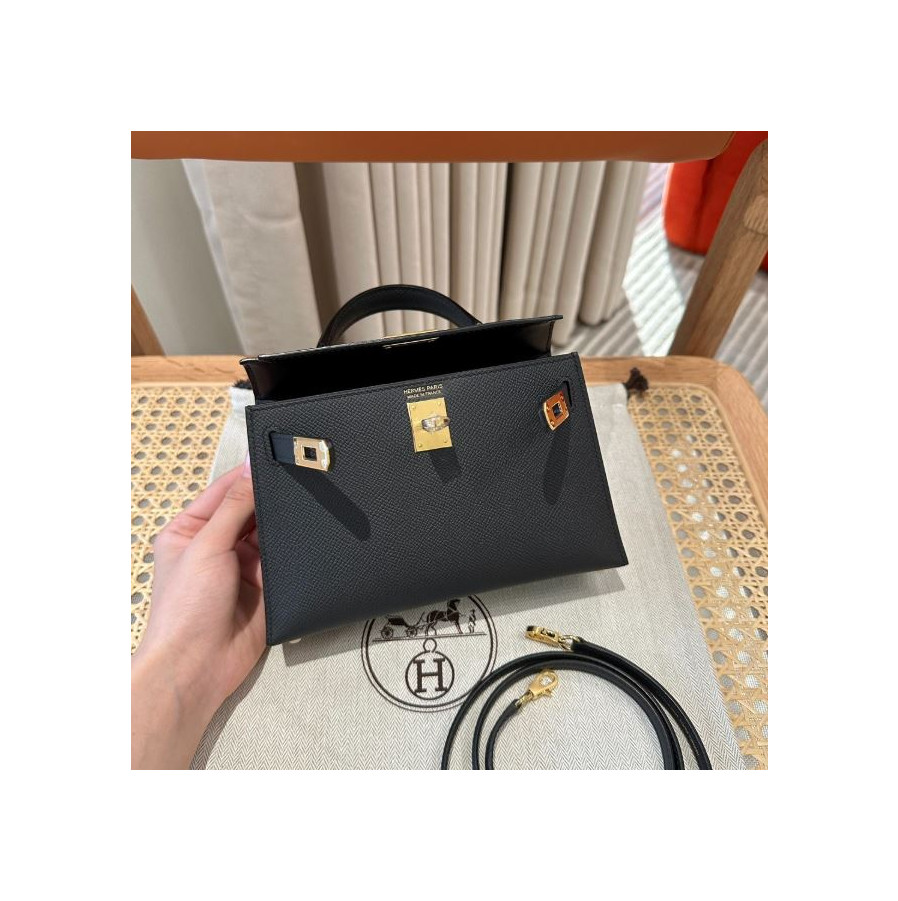 에르메스 미니 켈리2 블랙 앱송 금장 19cm