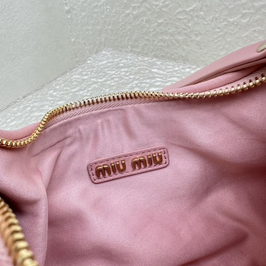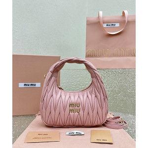 미우미우 완더 마테라쎄 나파 가죽 호보 백 라이트 핑크