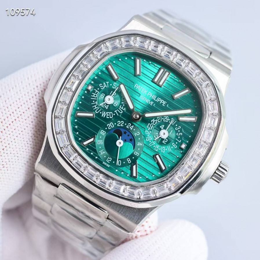 파텍필립 노틸러스 퍼페츄얼 캘린더 바게뜨 다이아 그린컬러 시계 워치