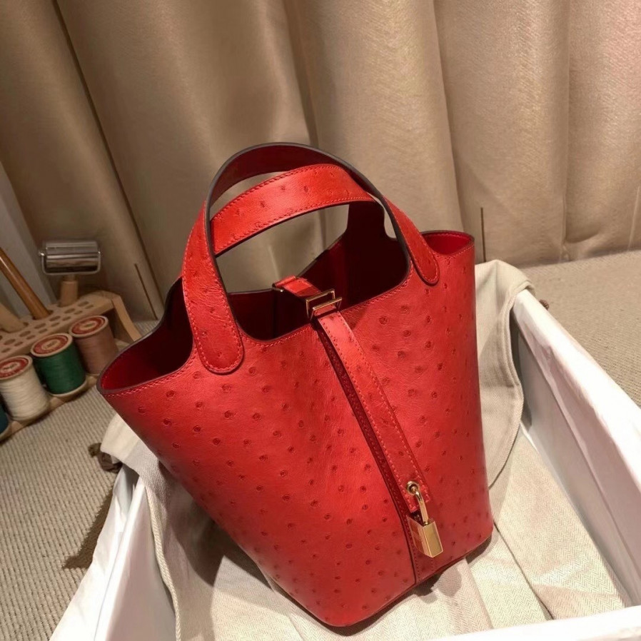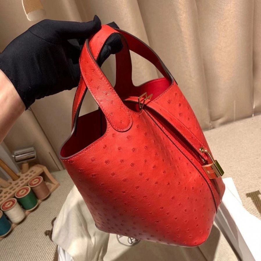 에르메스 피코탄 락18 레드 금장 타조가죽