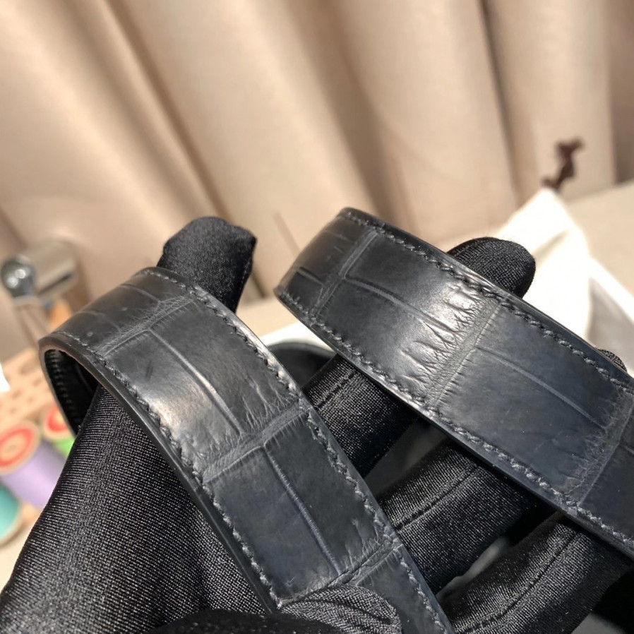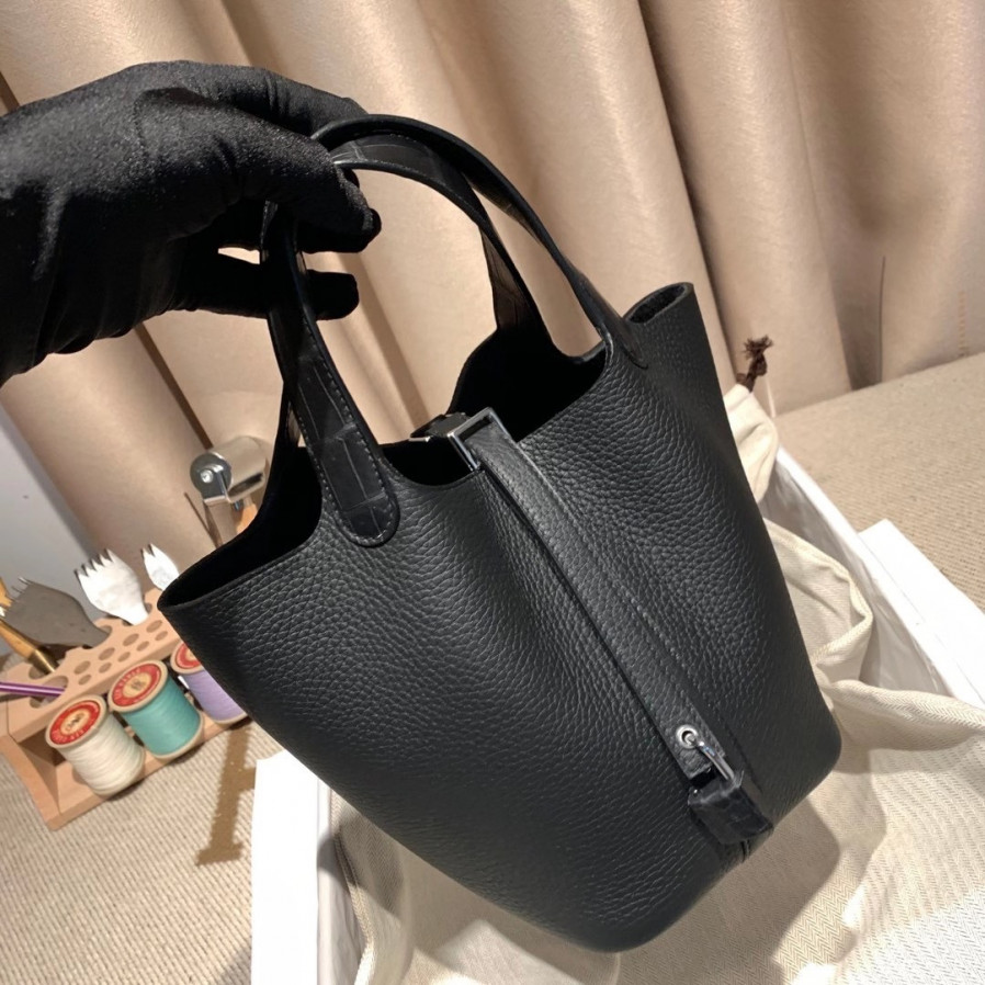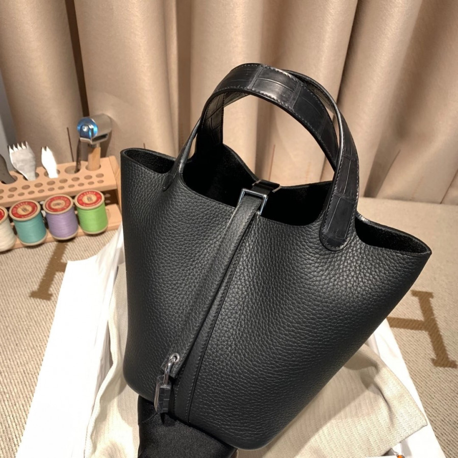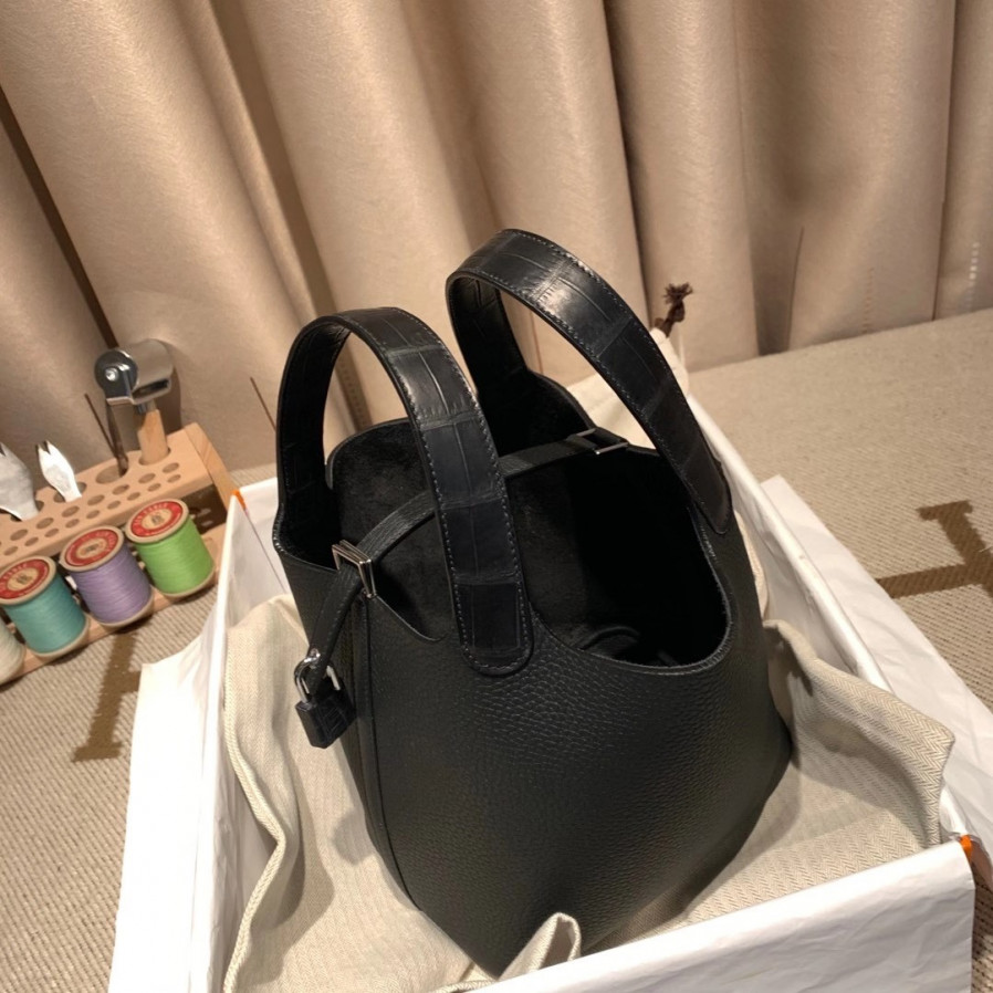 에르메스 피코탄 락18 블랙 은장 끌레망스 악어가죽 핸들