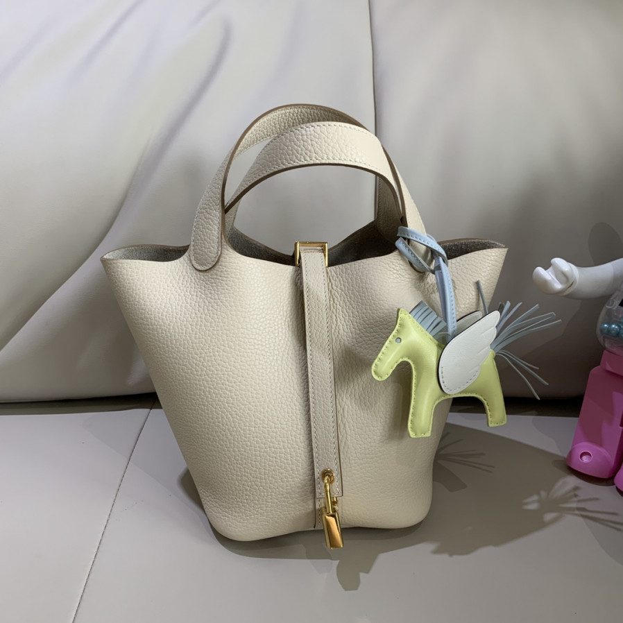 에르메스 피코탄 락18 화이트 금장 끌레망스 가죽