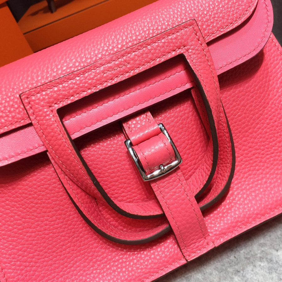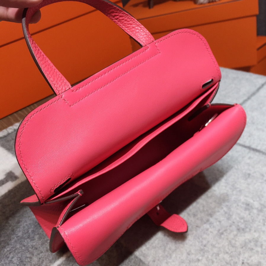 에르메스 미니 할잔백22 립스틱 핑크 은장 끌레망스 가죽