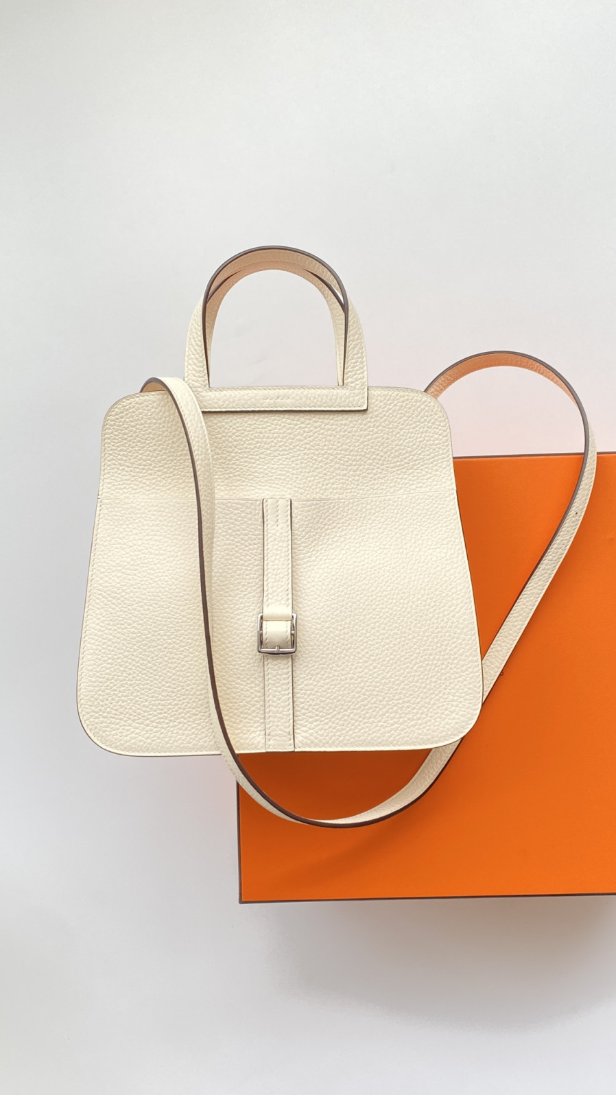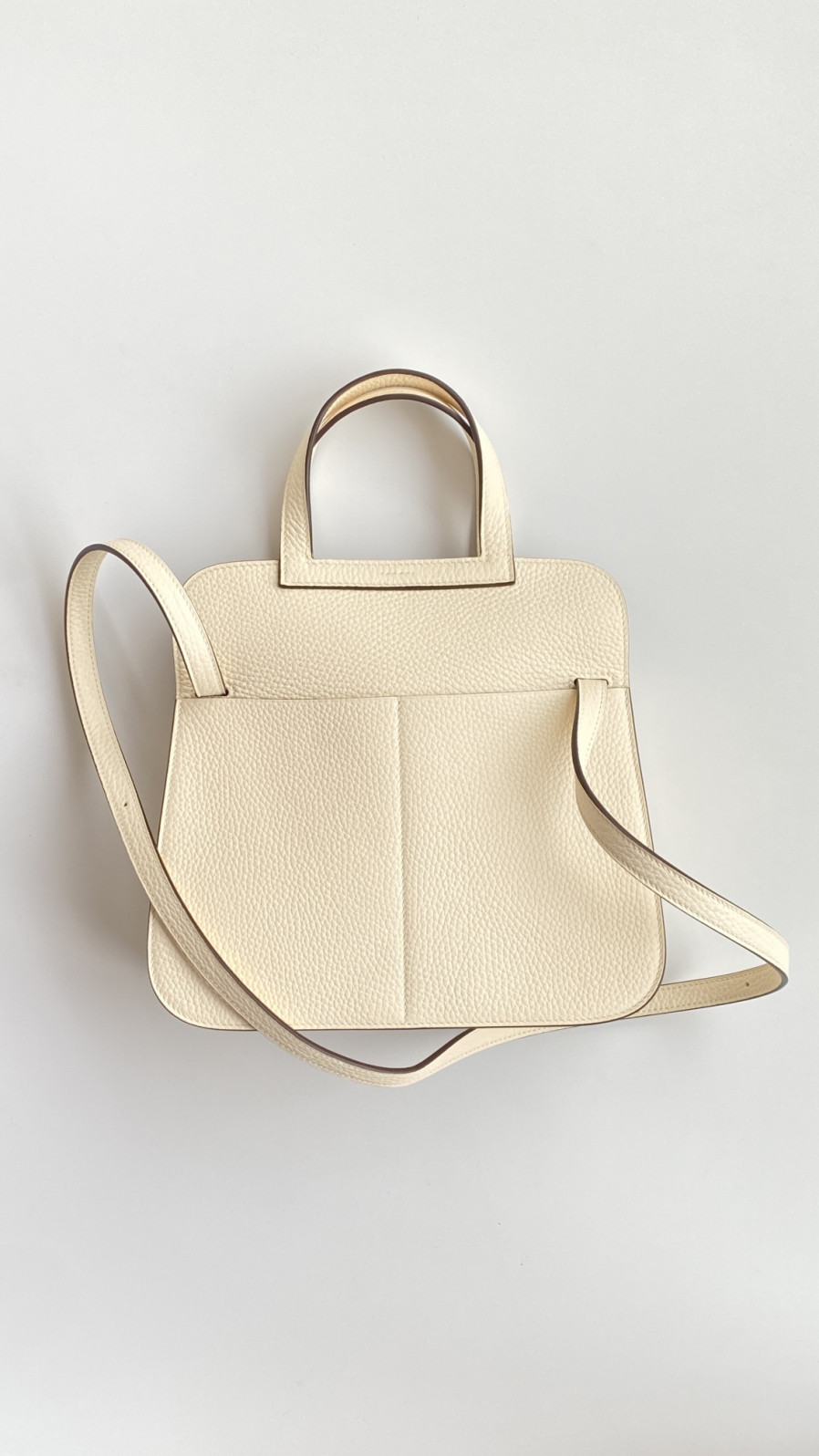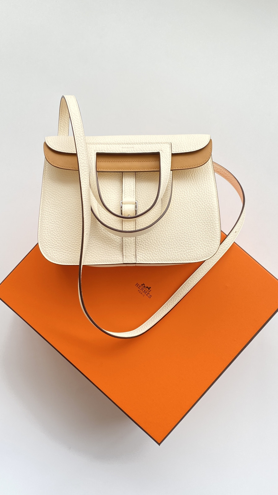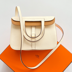에르메스 투톤 할잔백25 크림 은장 버클