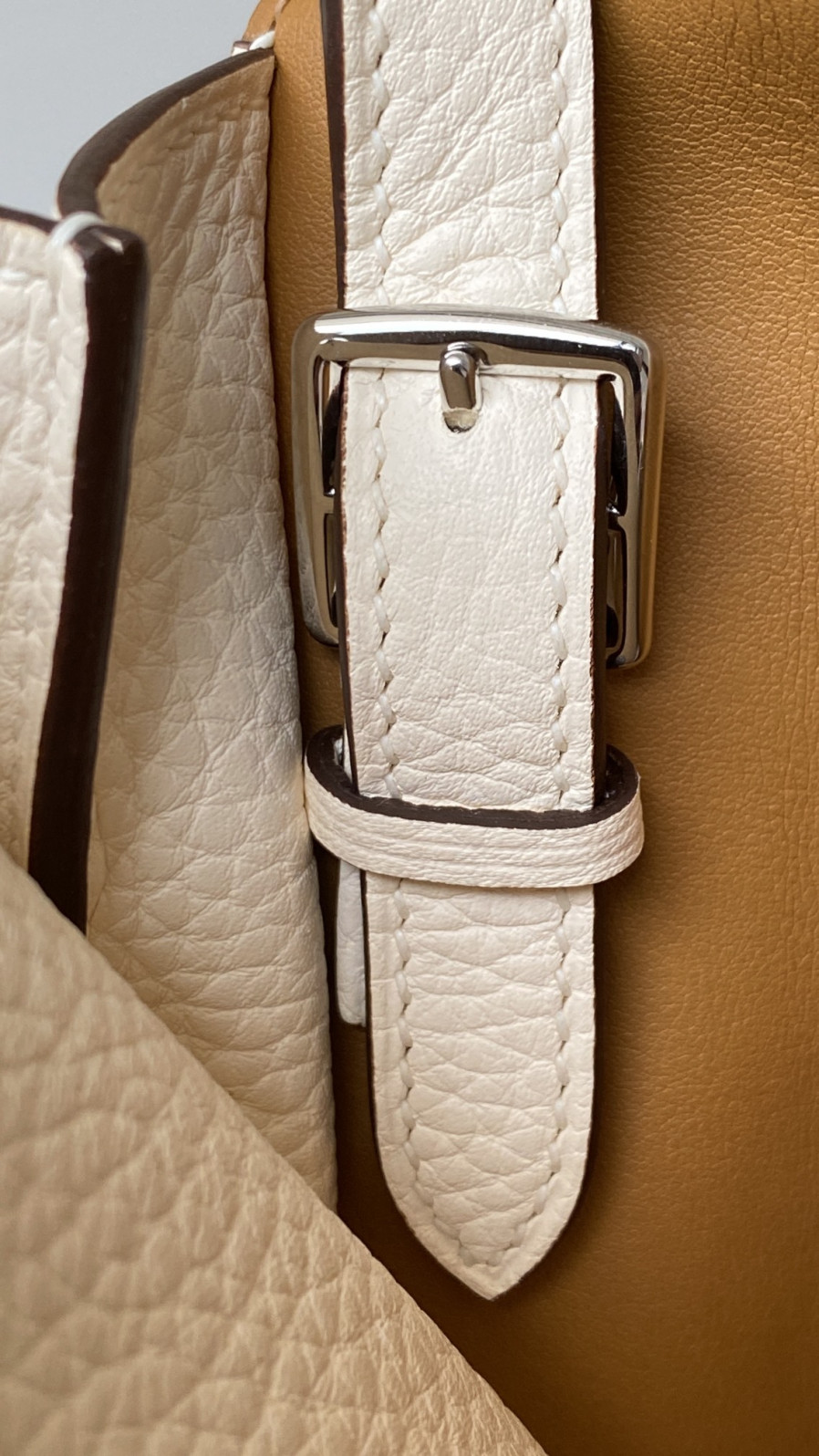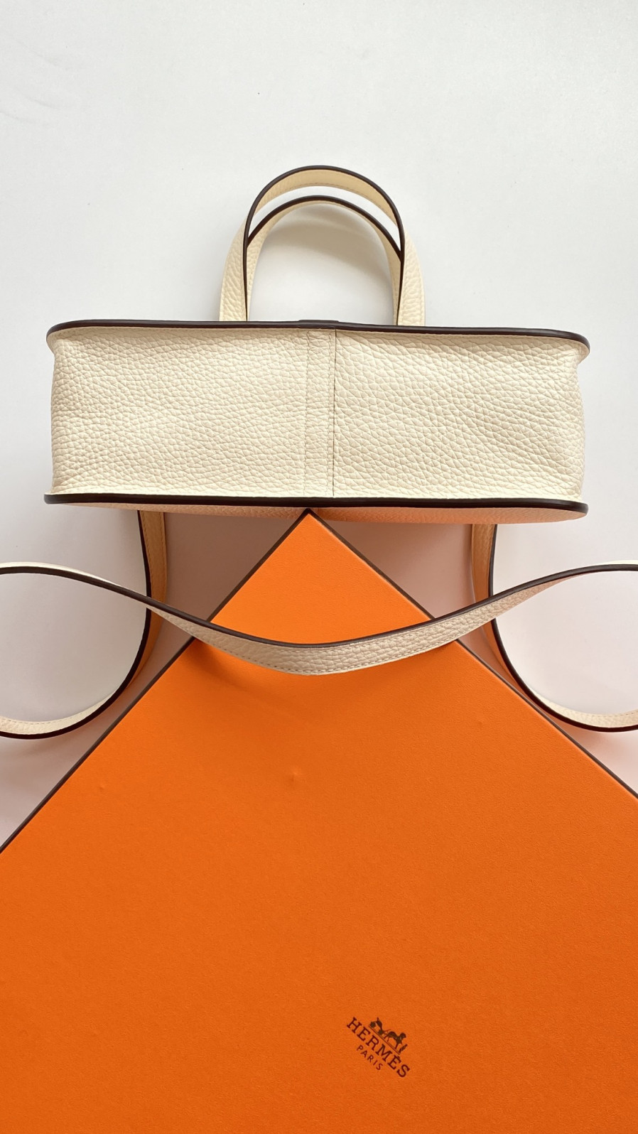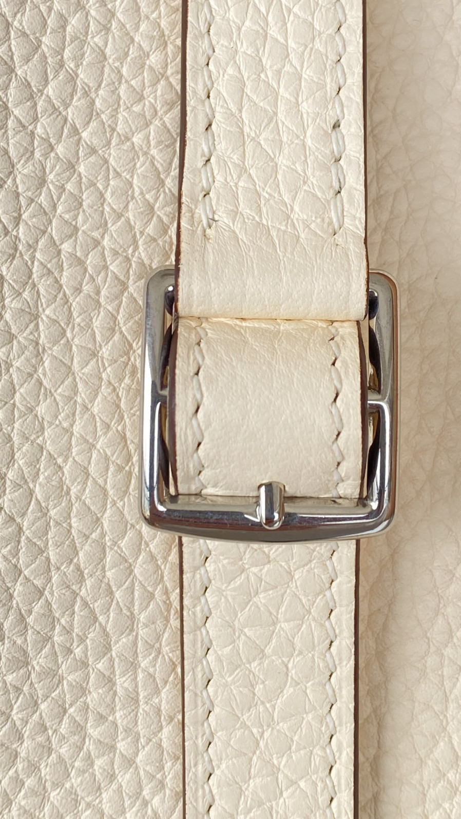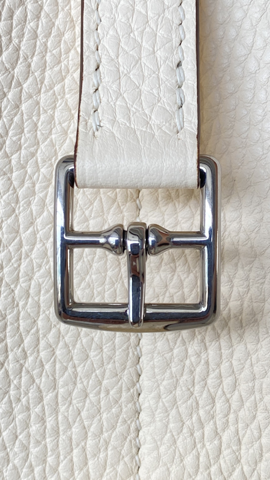 에르메스 투톤 할잔백25 크림 은장 버클