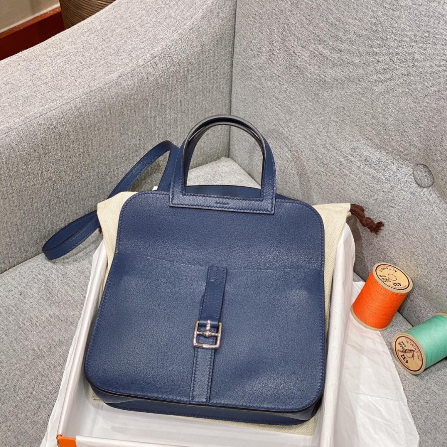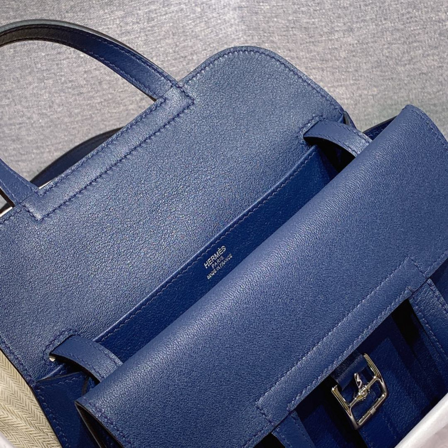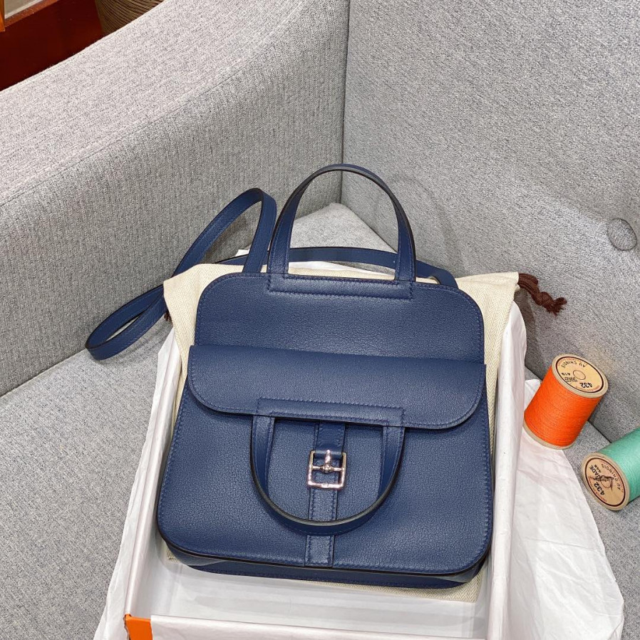에르메스 미니 할잔백 사파이어블루 은장 스위프트