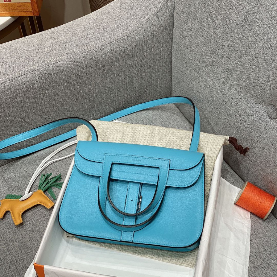 에르메스 미니 할잔백 블루로얄 은장 스위프트