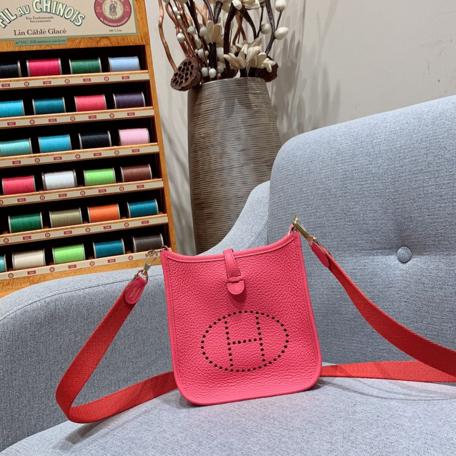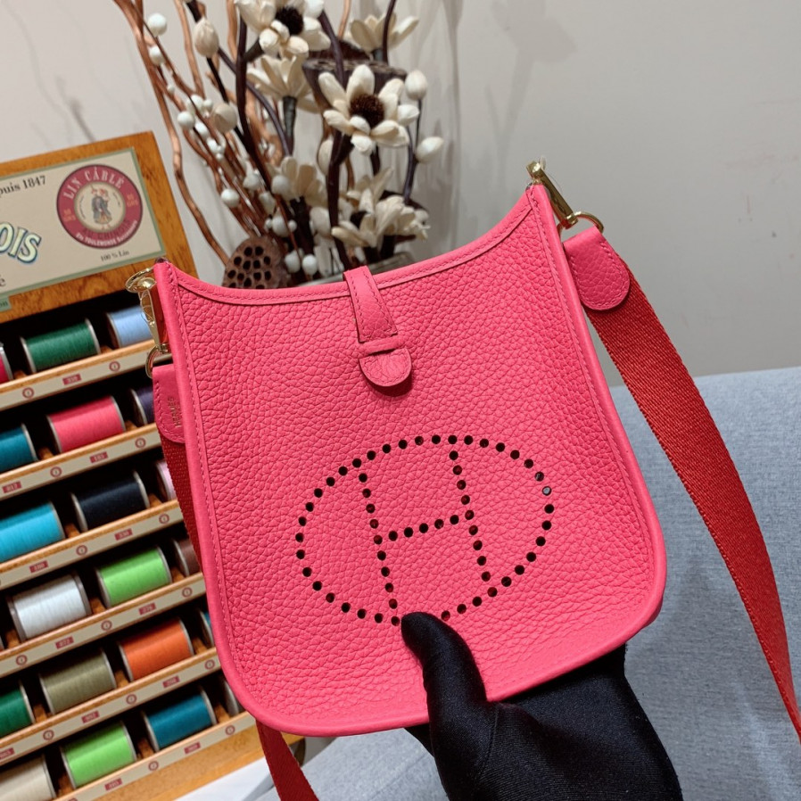 에르메스 미니 에블린16 립스틱 핑크 금장 끌레망스 가죽