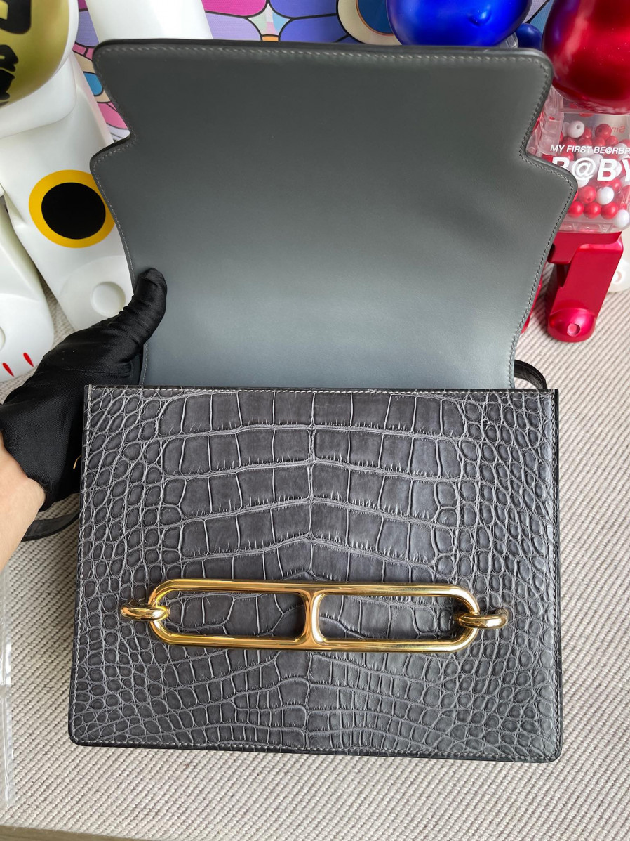 에르메스 룰리스23 블랙 그레이 금장 악어가죽