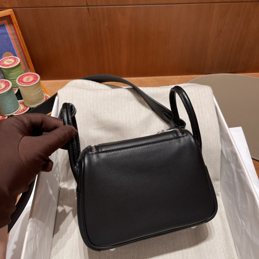 에르메스 미니 린디백 블랙 은장 스위프트 악어가죽 핸들