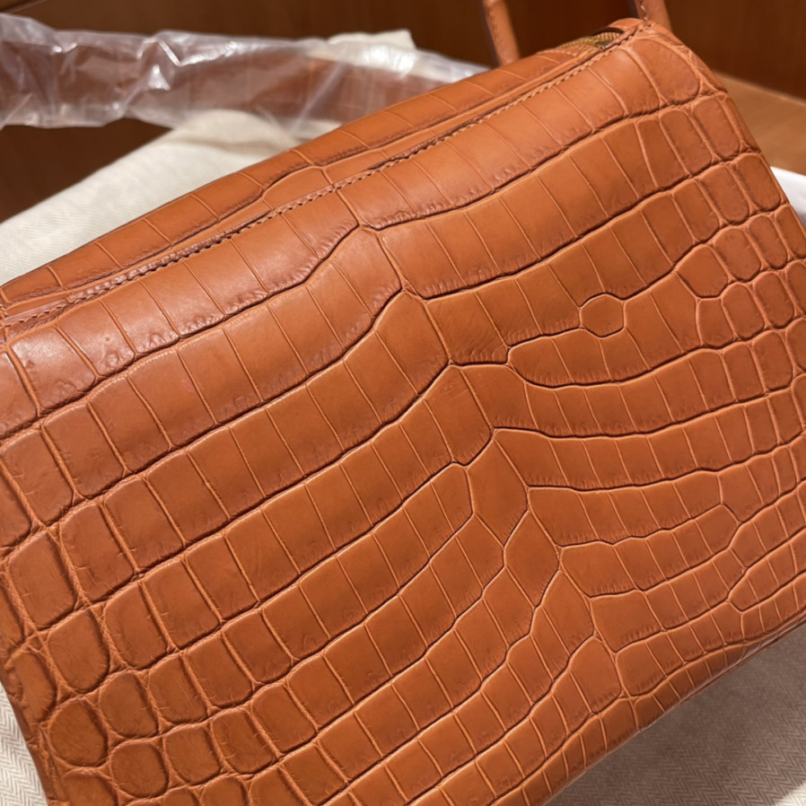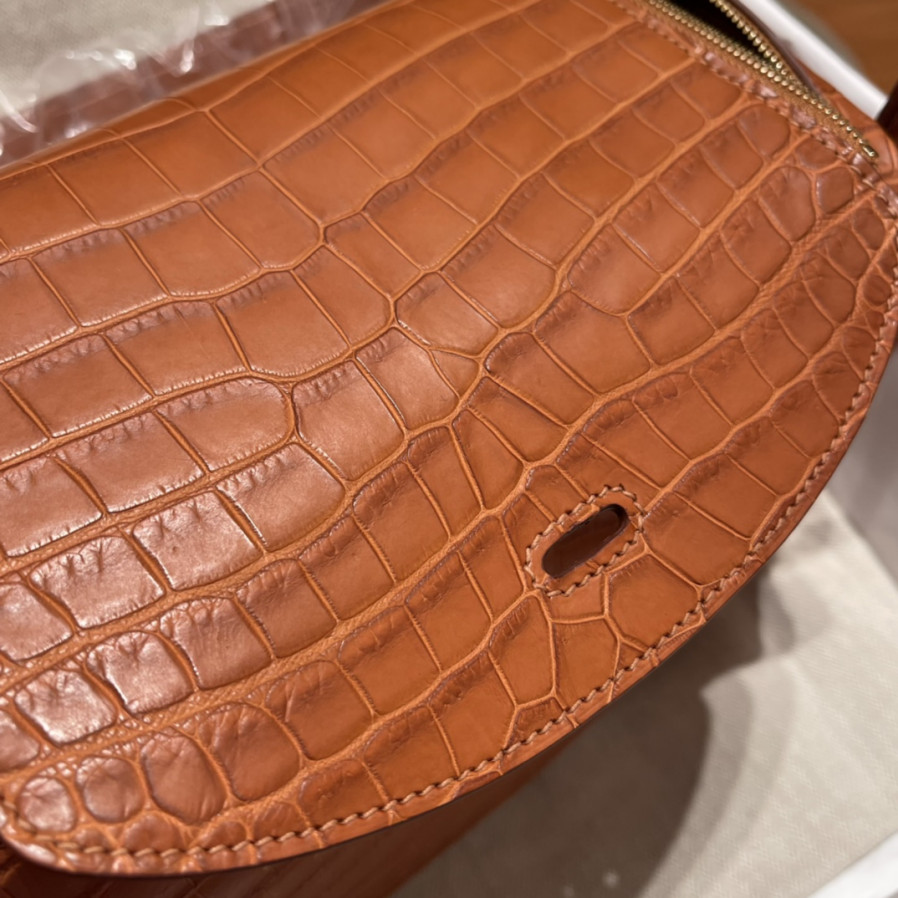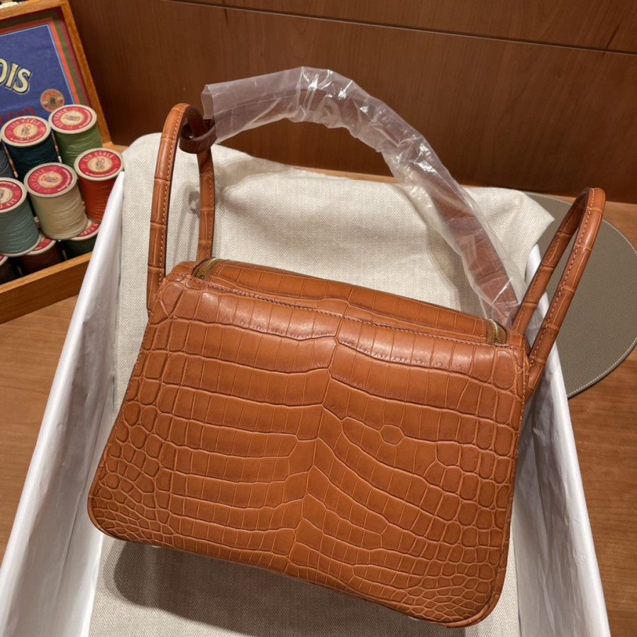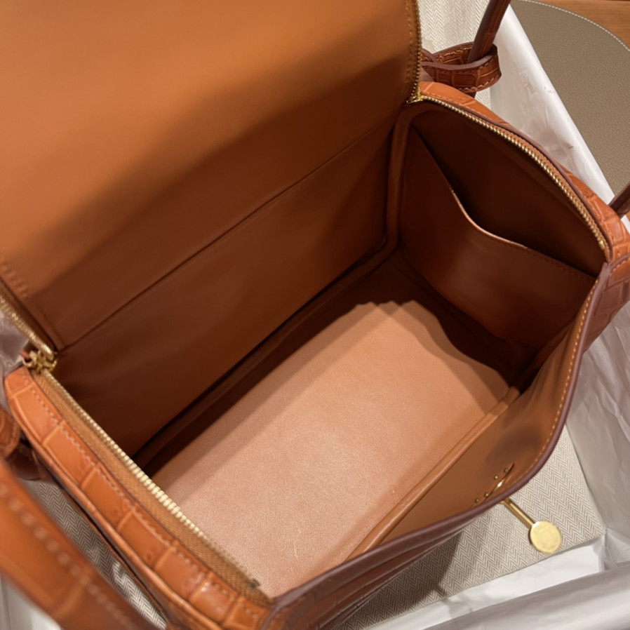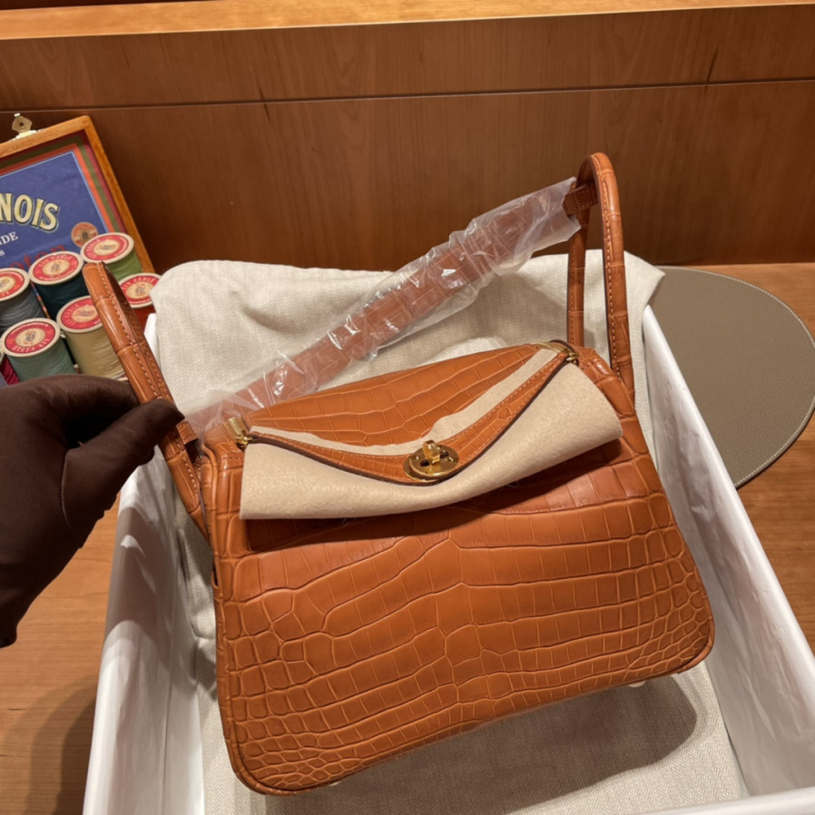 에르메스 미니 린디백 골드브라운 금장 스위프트 악어가죽 핸들