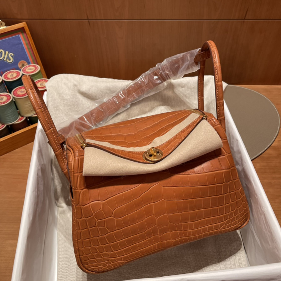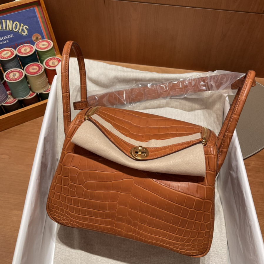 에르메스 린디백26 골드브라운 금장 악어가죽