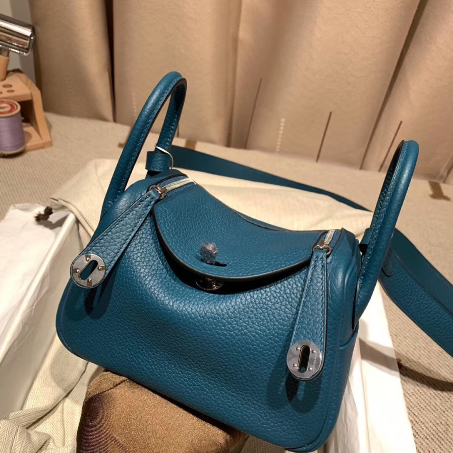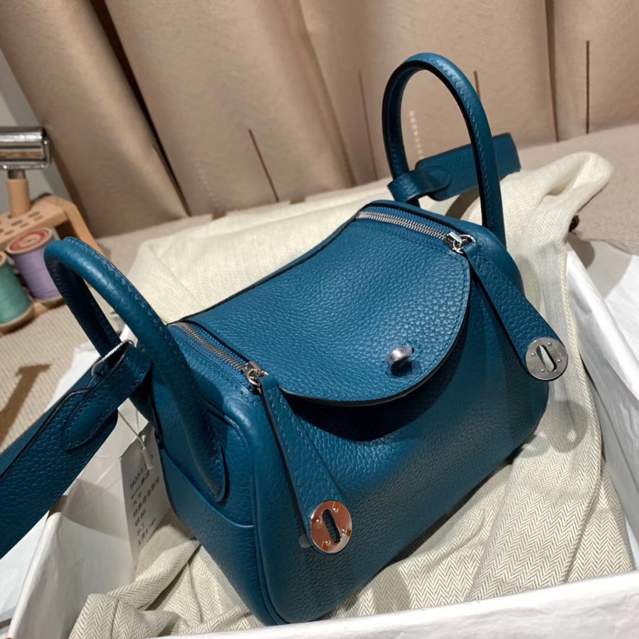 에르메스 미니 린디백19 블루드프루스 은장 끌레망스 가죽