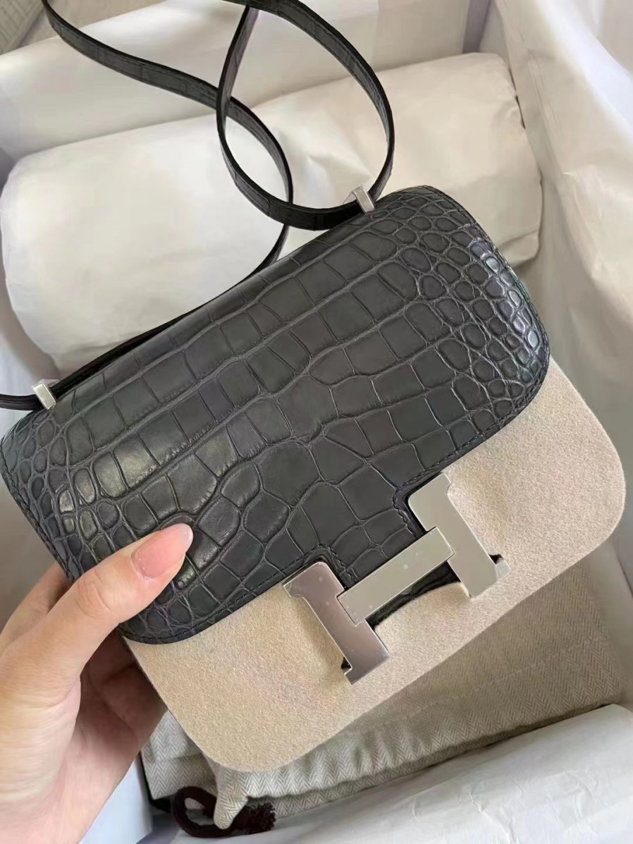 에르메스 콘스탄스18 블랙 은장 악어가죽