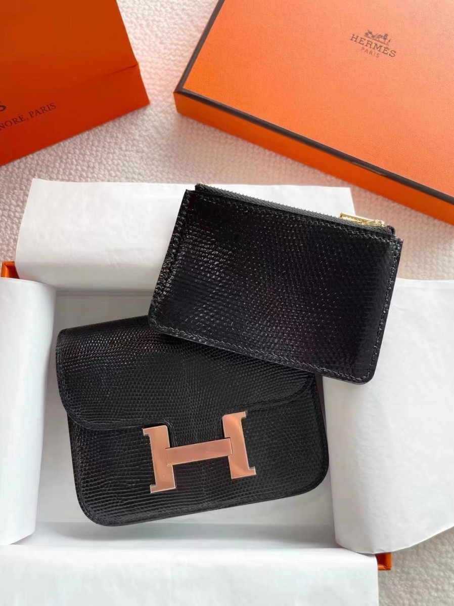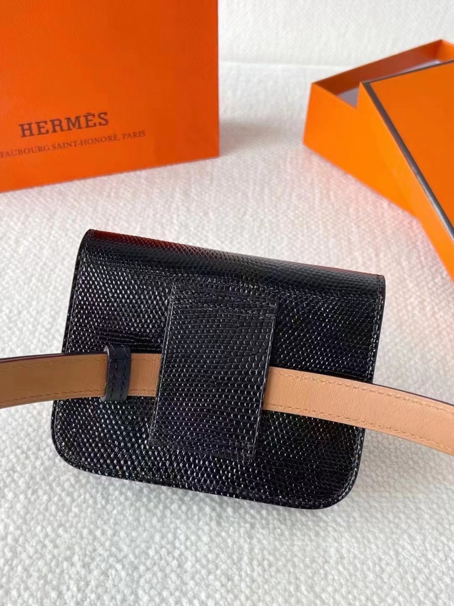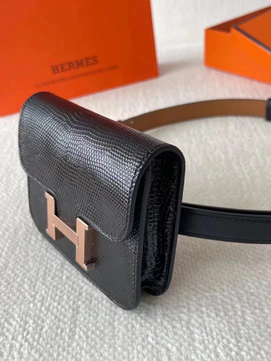 에르메스 콘스탄스백 미니 블랙 로즈골드 버클 리자드 가죽