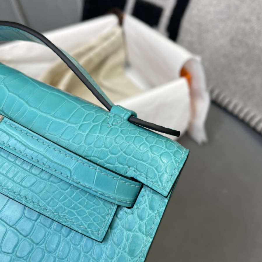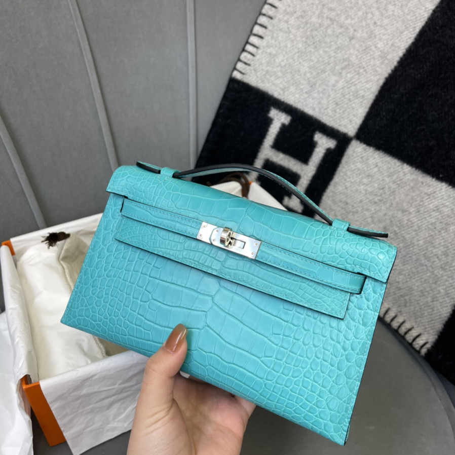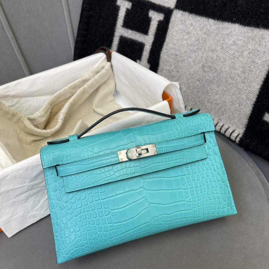 에르메스 켈리 포쉐트 블루 은장 악어가죽