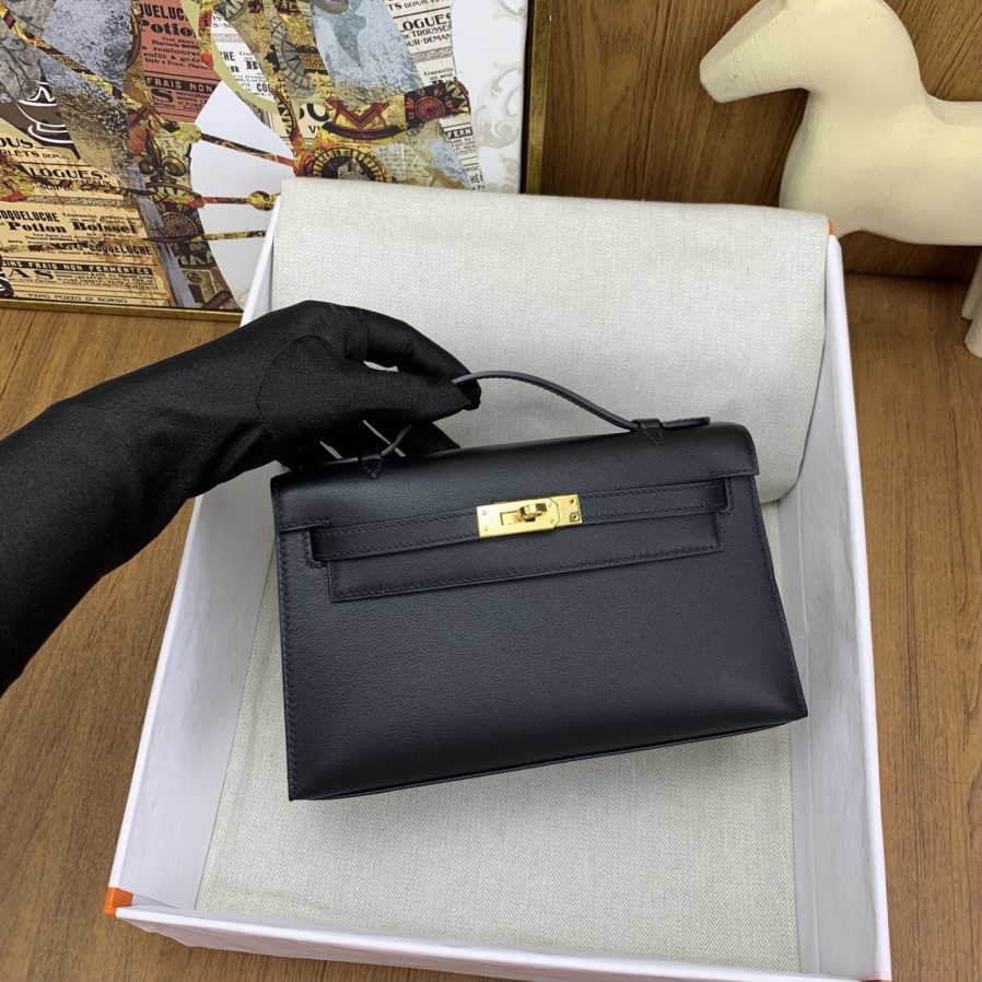 에르메스 켈리 포쉐트 스위프트 블랙 금장