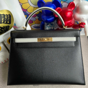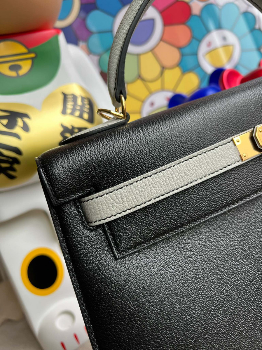 에르메스 켈리백32 블랙 그레이 금장 염소가죽