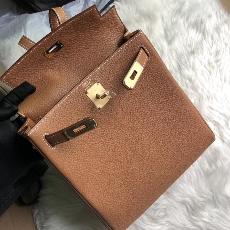 에르메스 켈리 아도 백팩 골드 브라운 금장