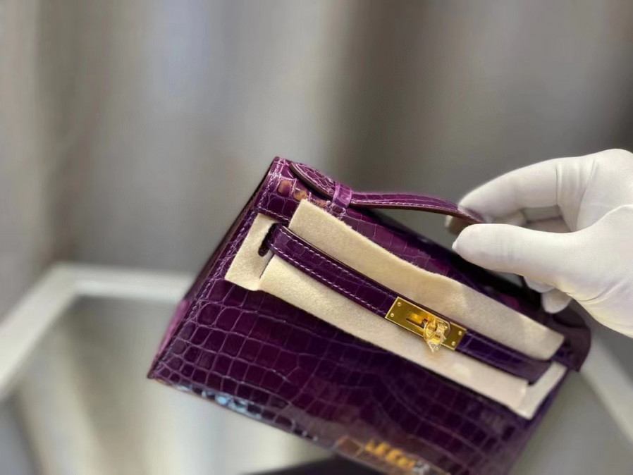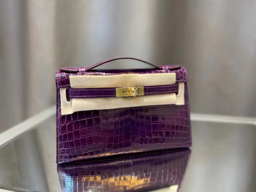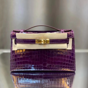 에르메스 켈리 포쉐트 퍼플 금장 샤이니 악어가죽