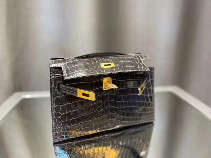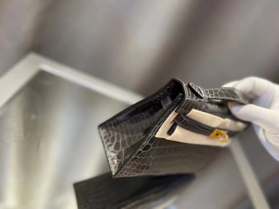 에르메스 켈리 포쉐트 블랙 금장 샤이니 악어가죽