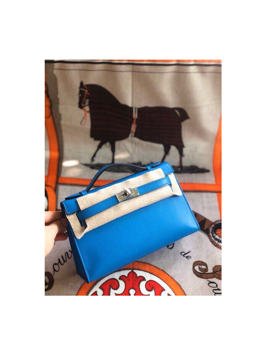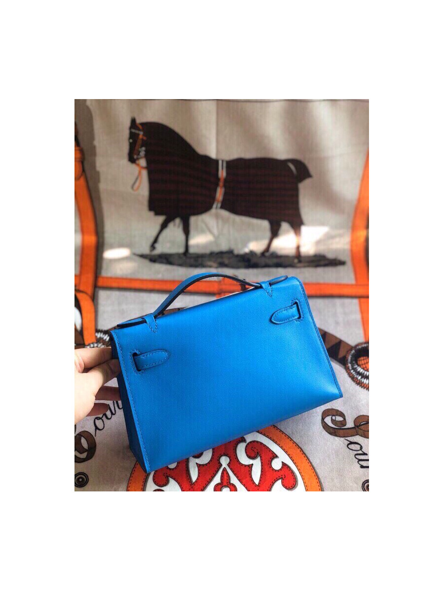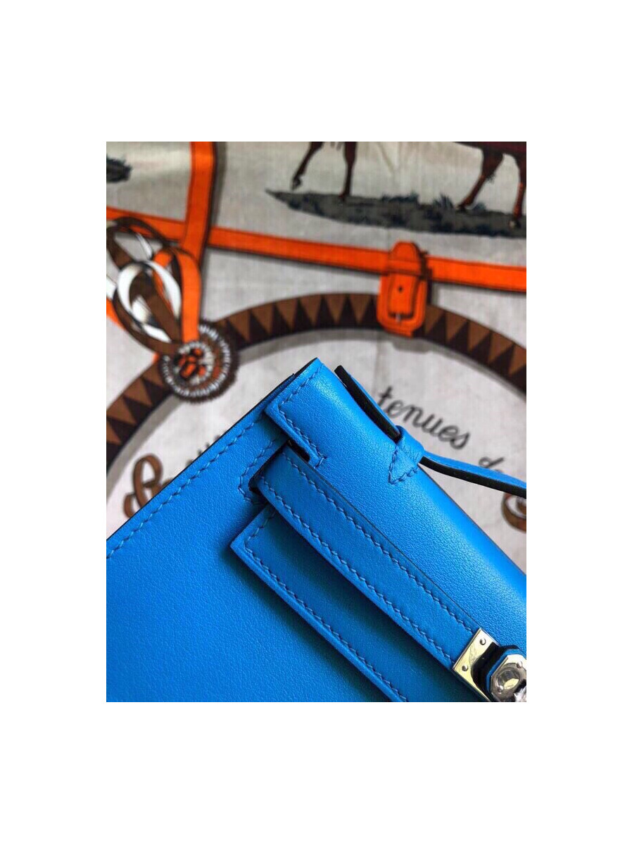 에르메스 미니 켈리백22 블루 은장 스위프트