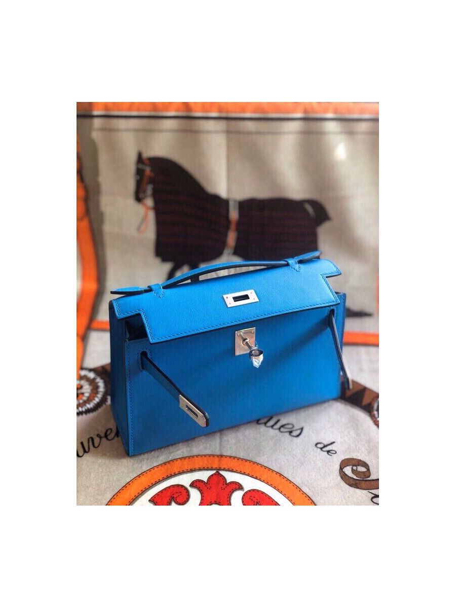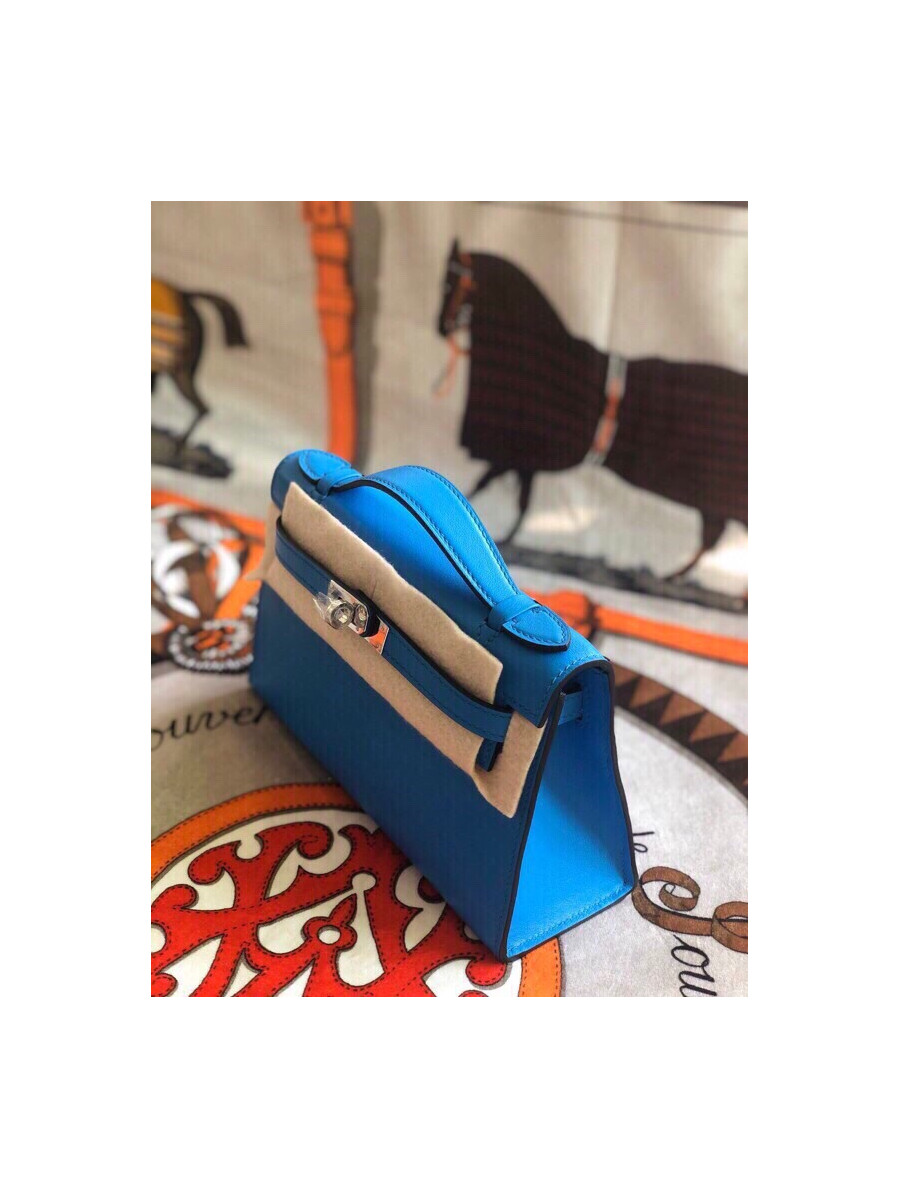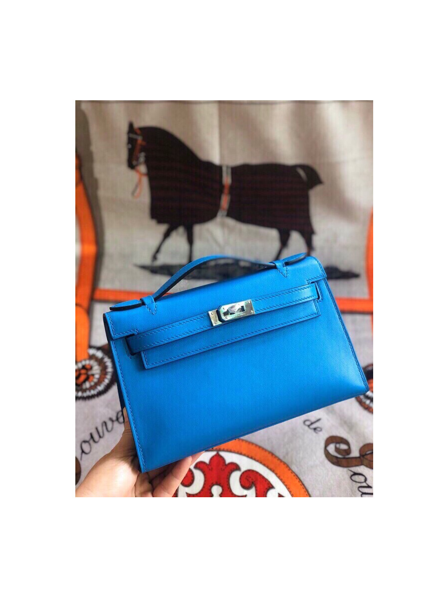 에르메스 미니 켈리백22 블루 은장 스위프트