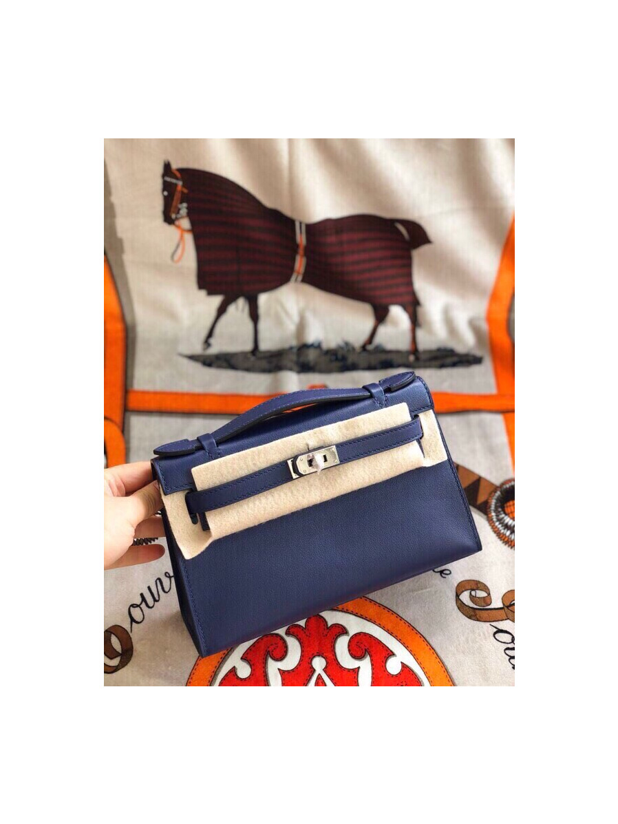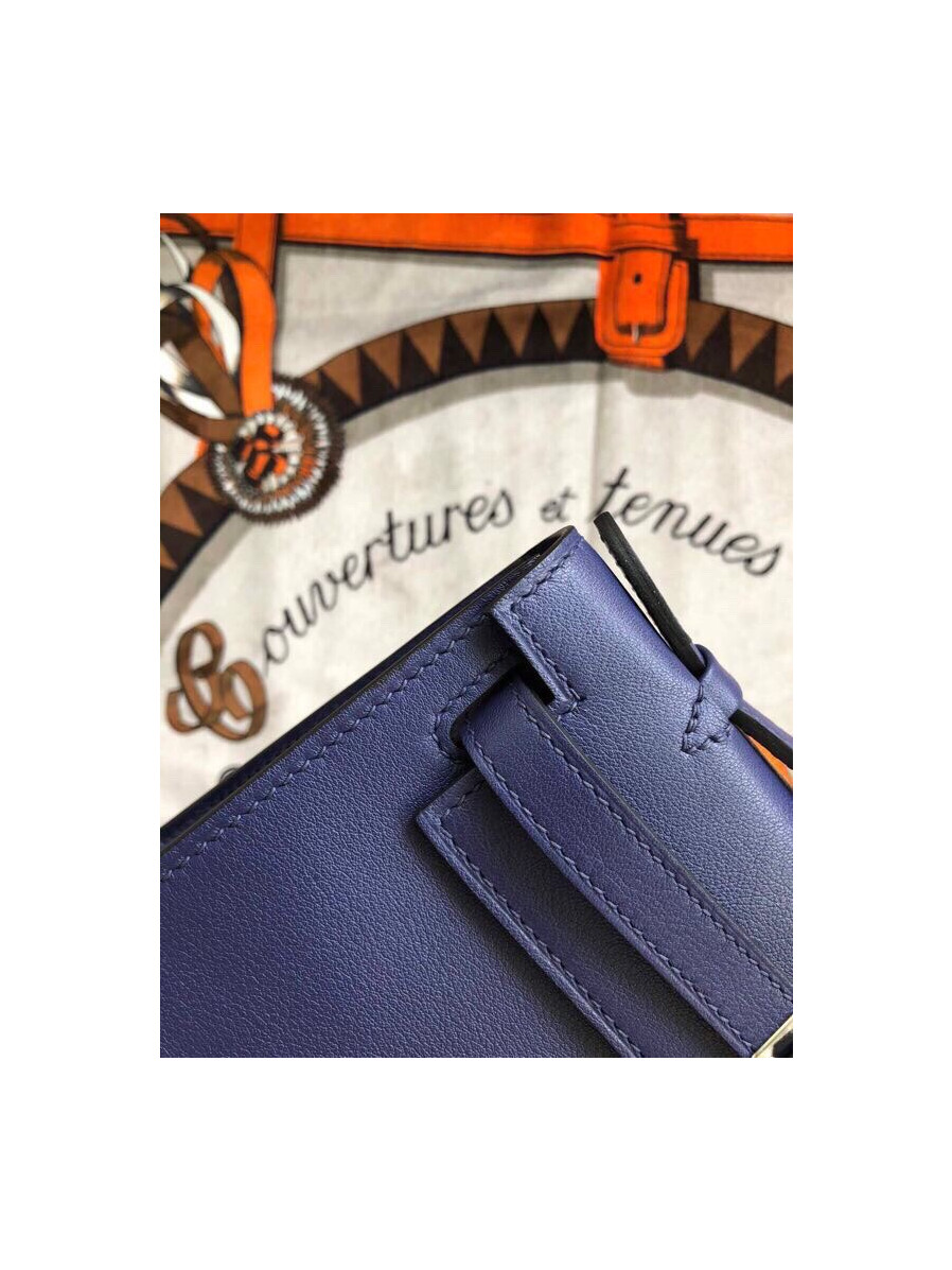 에르메스 미니 켈리백22 블루사파이어 은장 스위프트