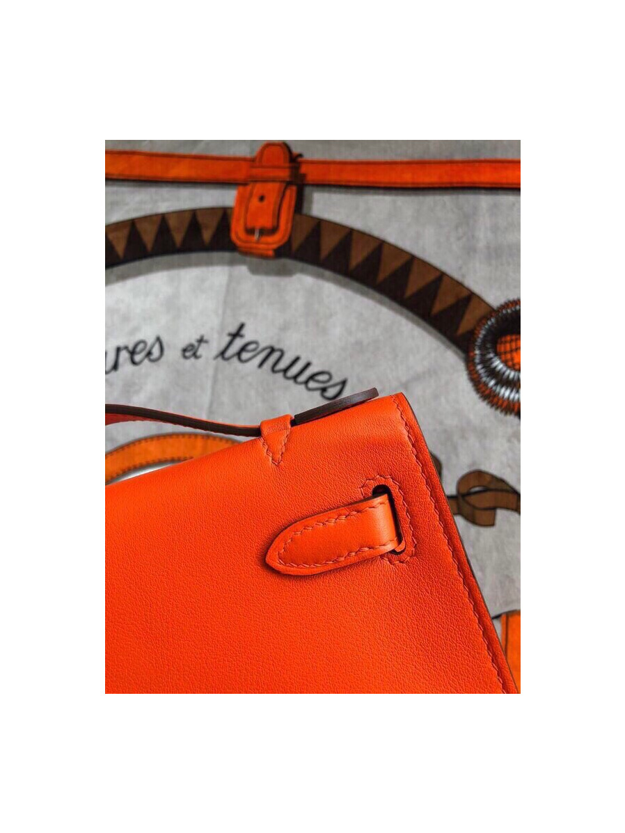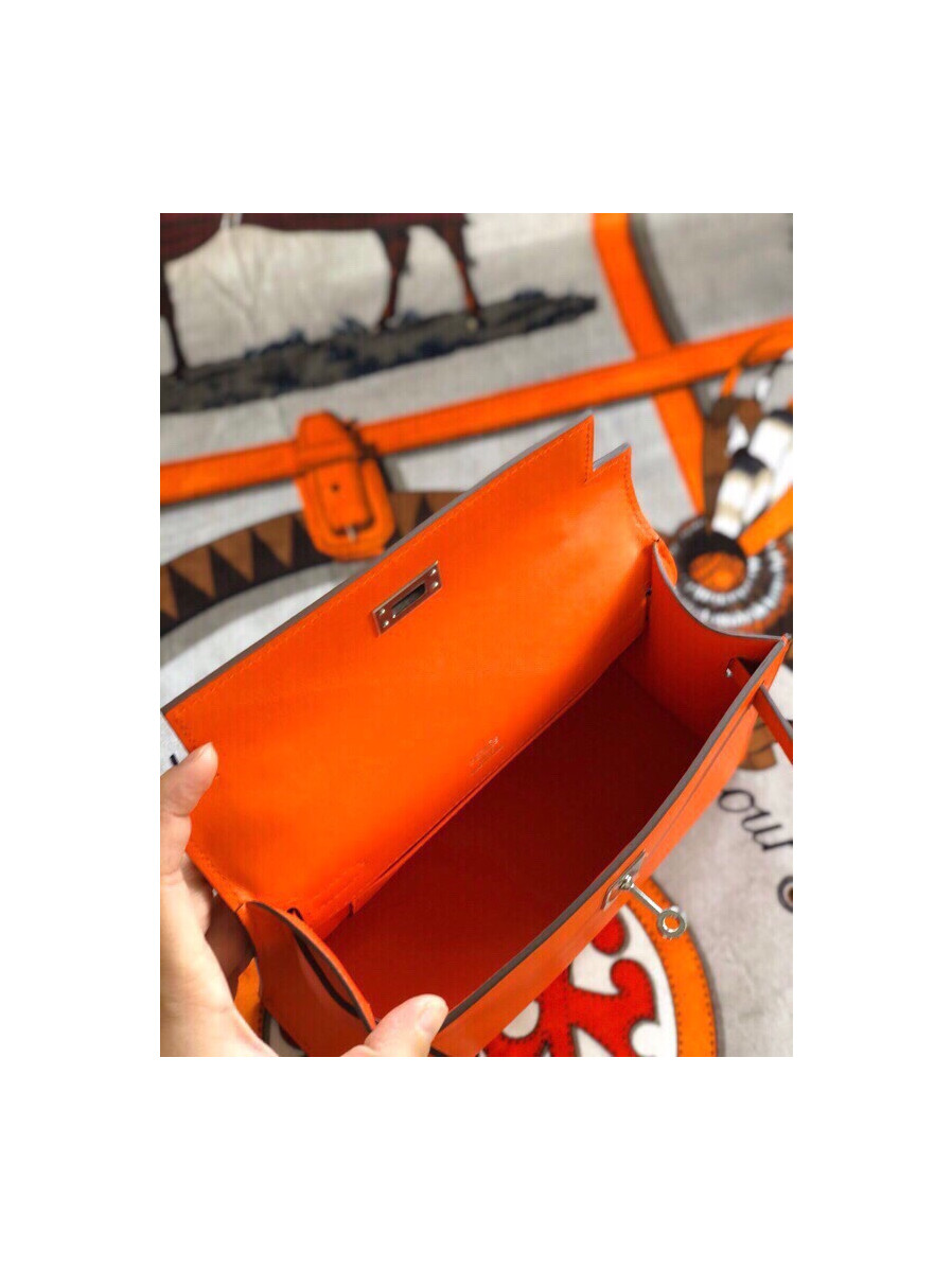 에르메스 미니 켈리백22 오렌지 은장 스위프트