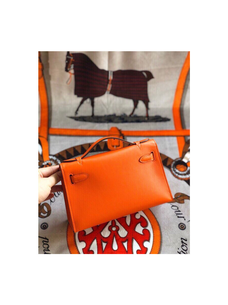 에르메스 미니 켈리백22 오렌지 금장 스위프트