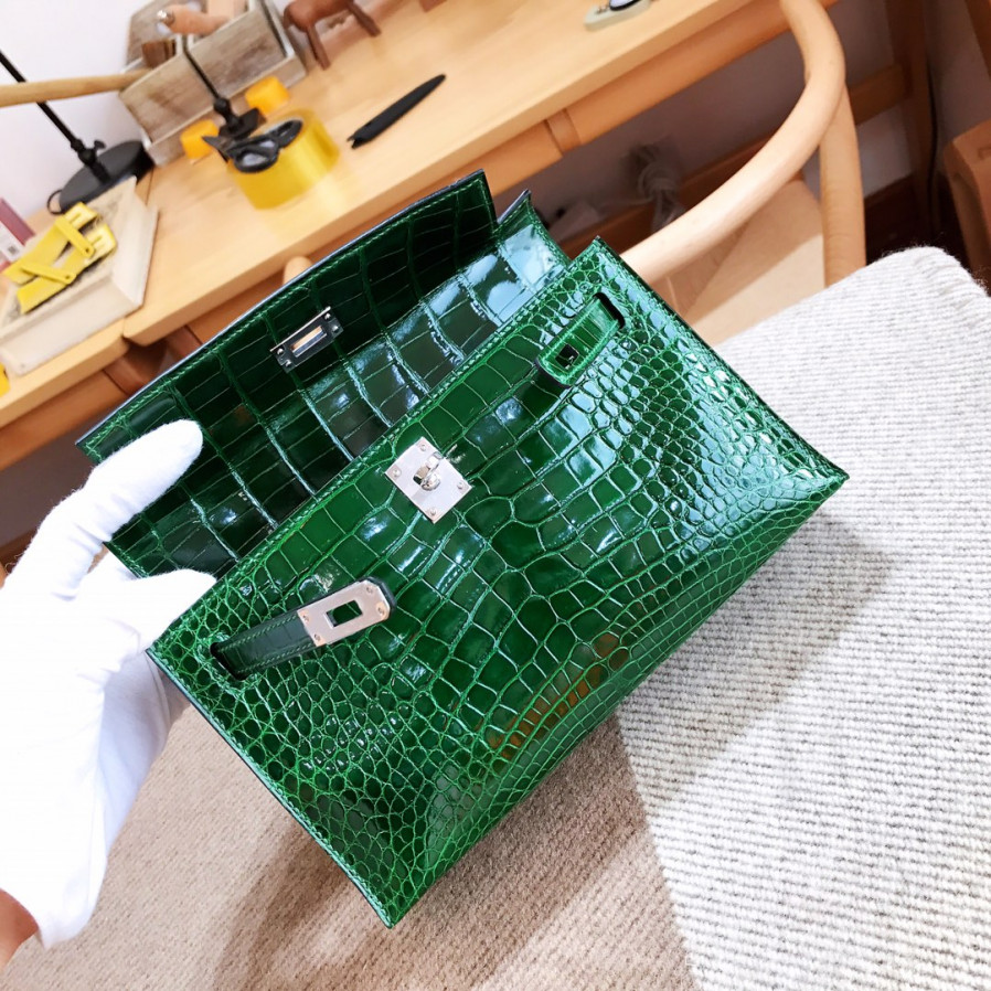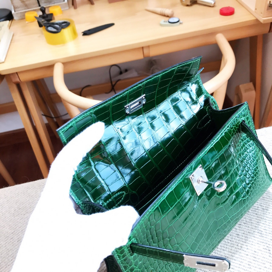 에르메스 미니 켈리백22 버트폰스 은장 샤이니 악어가죽