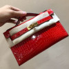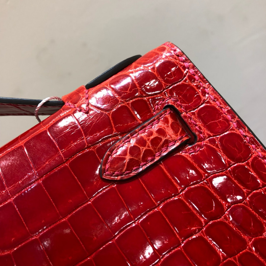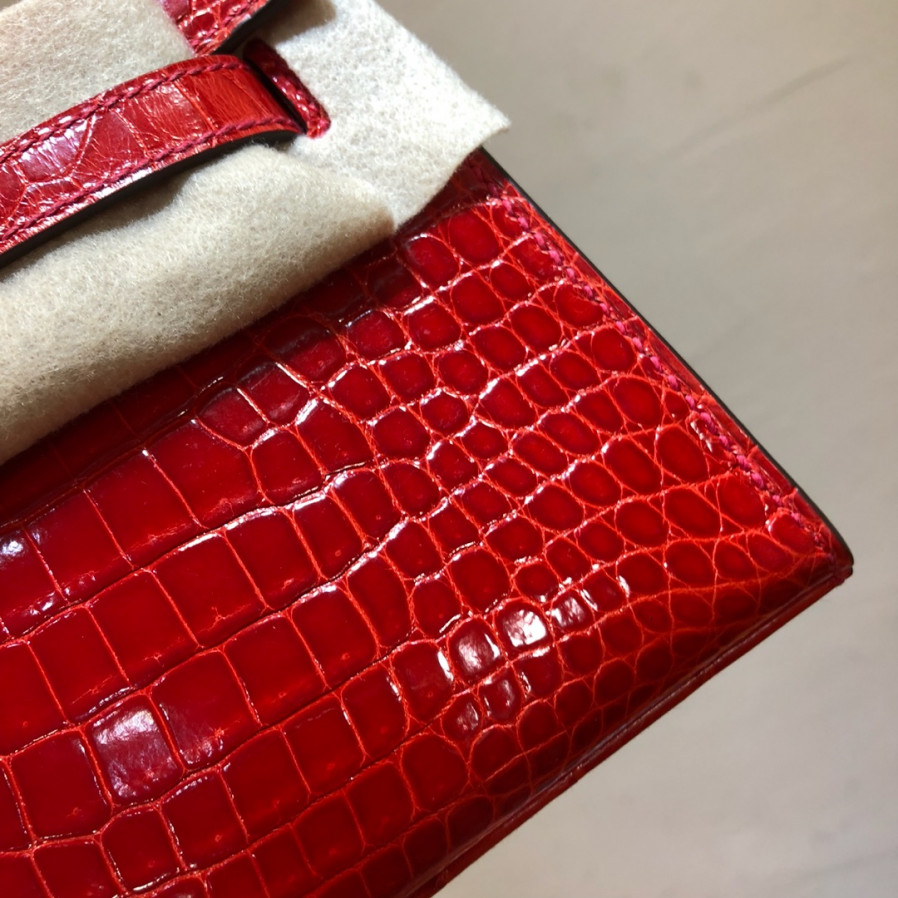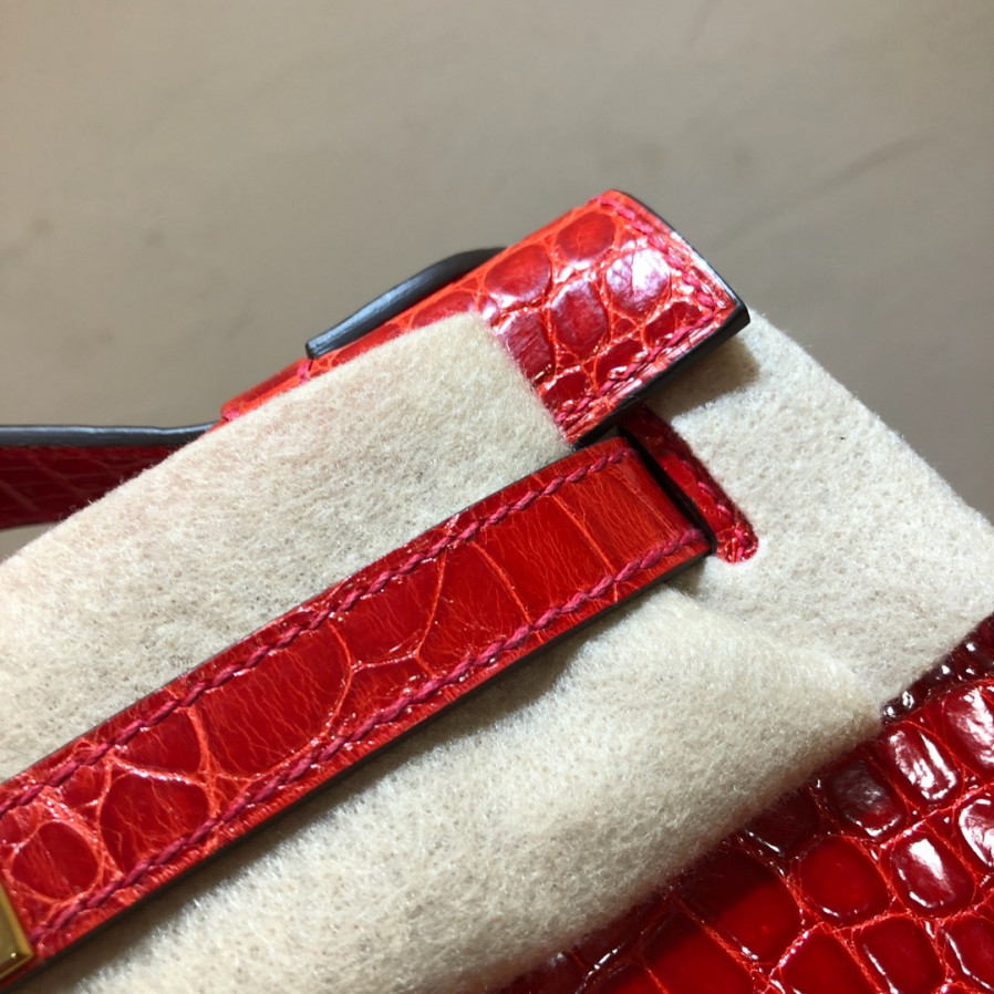 에르메스 미니 켈리백22 레드 금장 샤이니 악어가죽