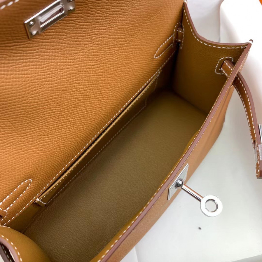 에르메스 미니 켈리백22 골드브라운 은장