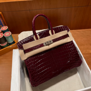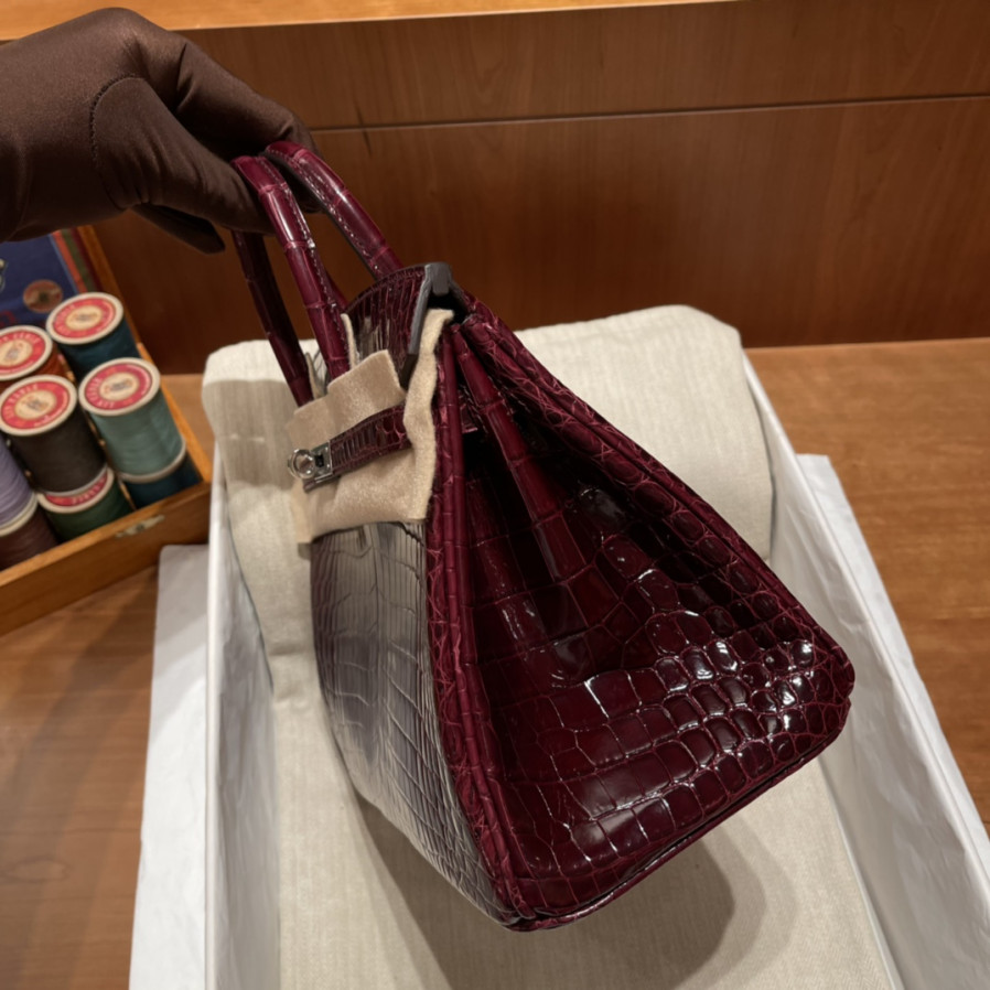 에르메스 버킨백25 와인레드 은장 샤이니 악어가죽