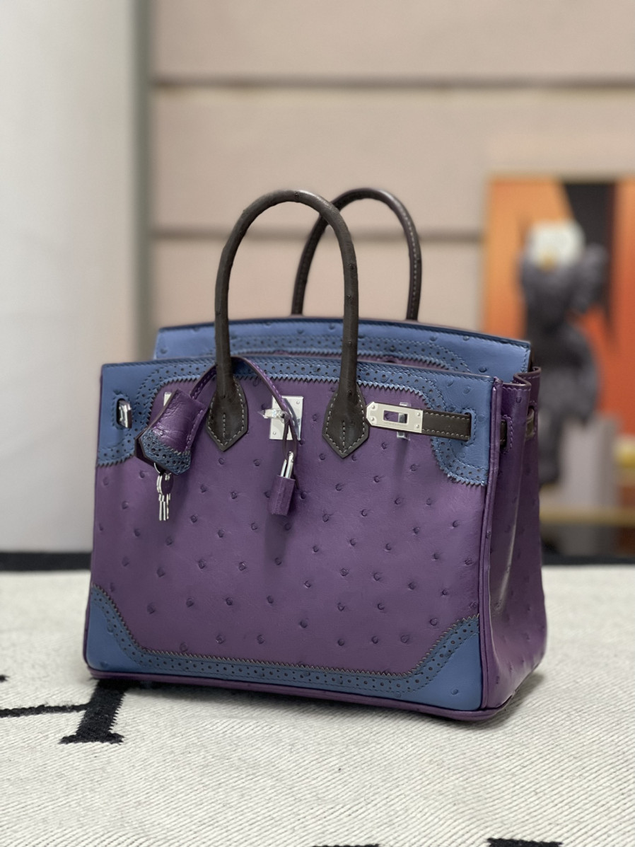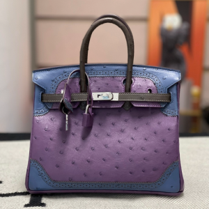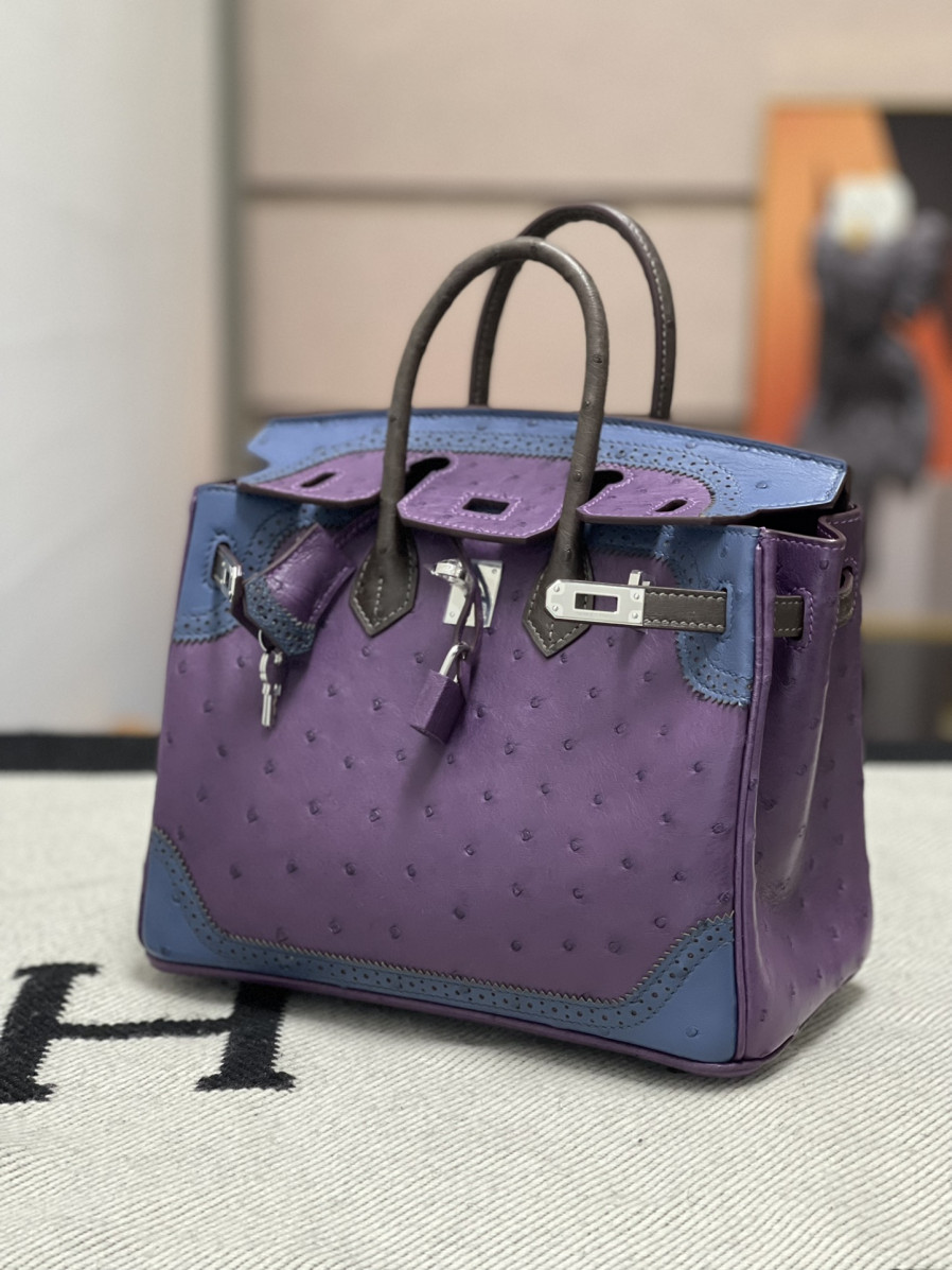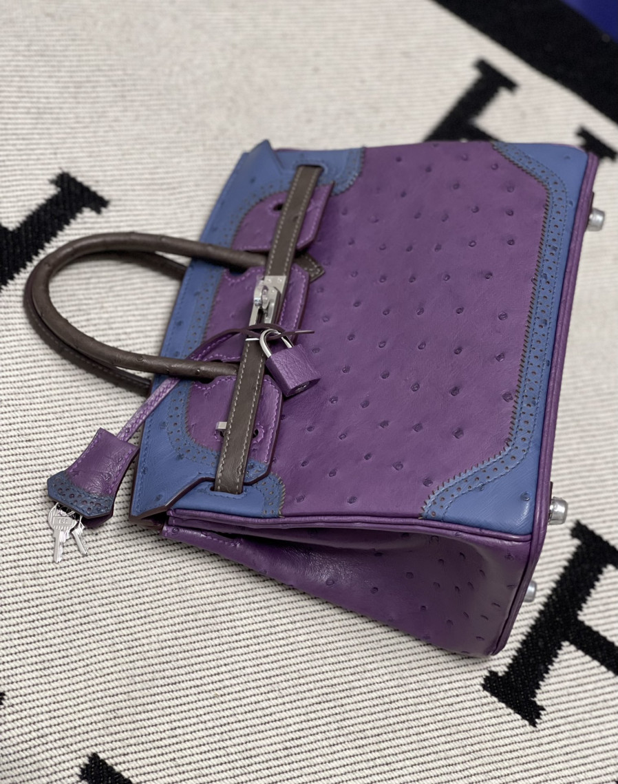 에르메스 버킨백25 퍼플 블루 브라운 은장 타조가죽