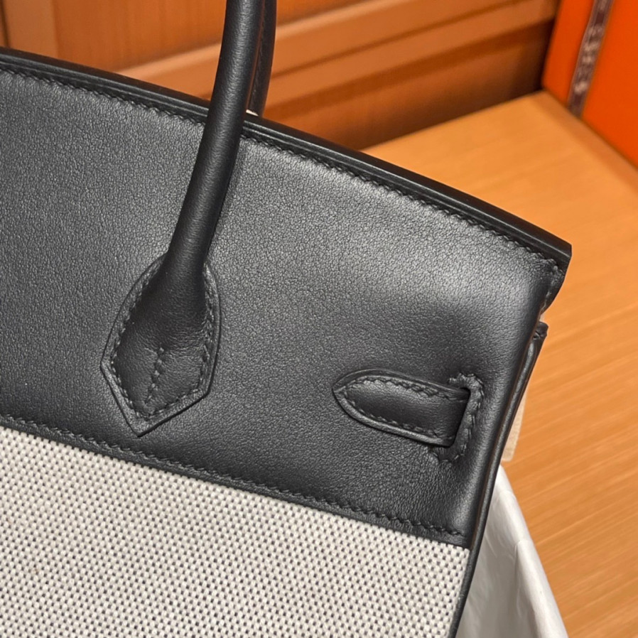 에르메스 버킨백30 톨리 블랙 은장 캔버스 스위프트
