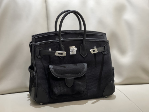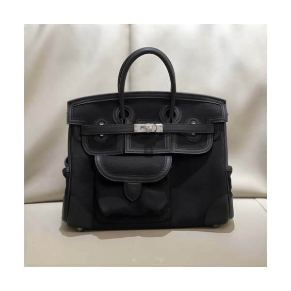 • 에르메스 버킨백25 스위프트 카고 캔버스 블랙 은장