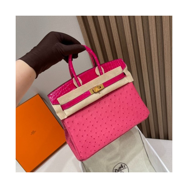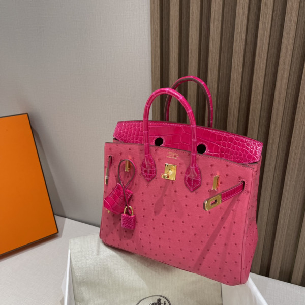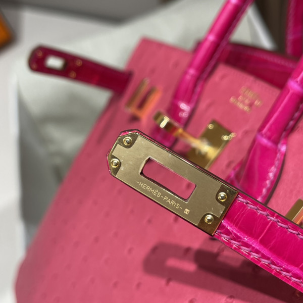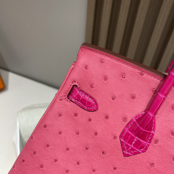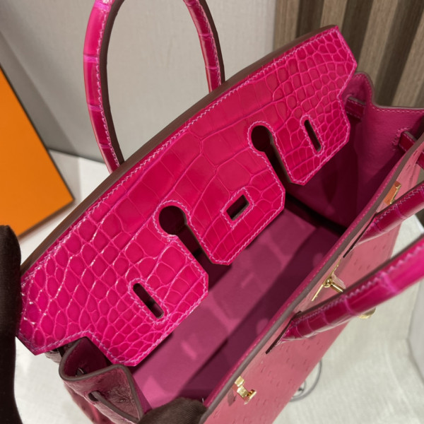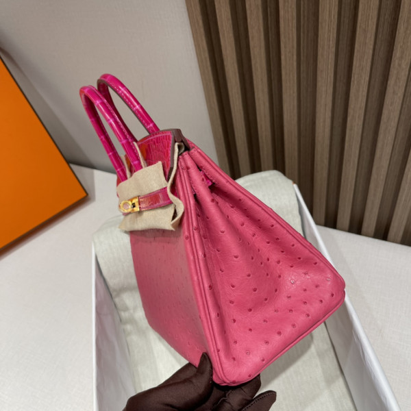 • 에르메스 버킨백25 티리엔 핑크 금장 타조가죽 악어가죽 핸들