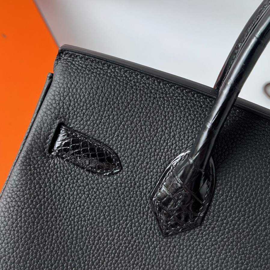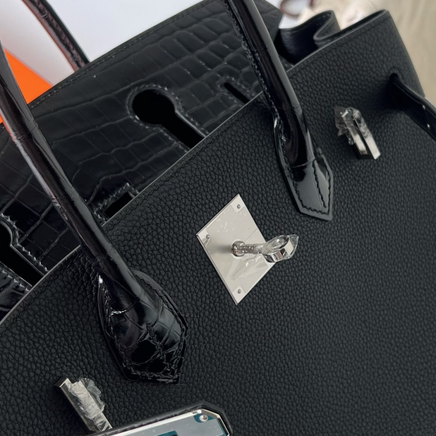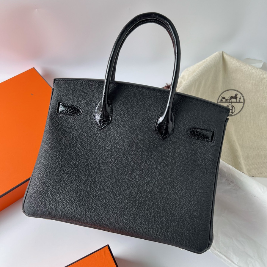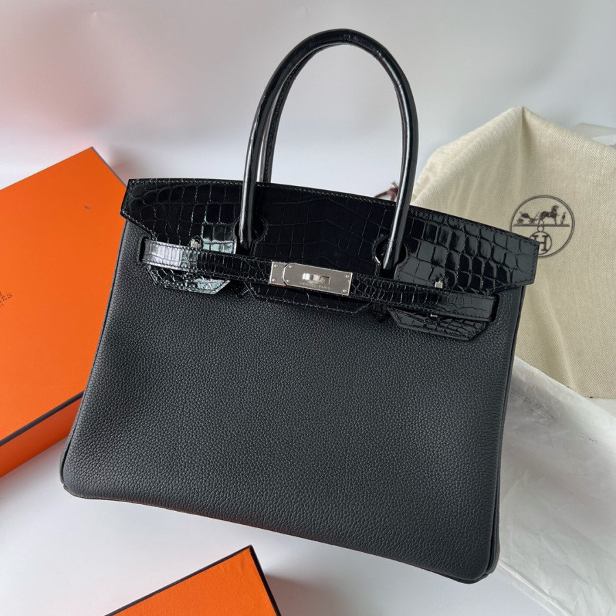에르메스 버킨백30 블랙 은장 샤이니 악어가죽 핸들