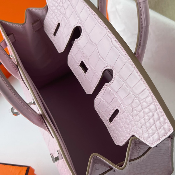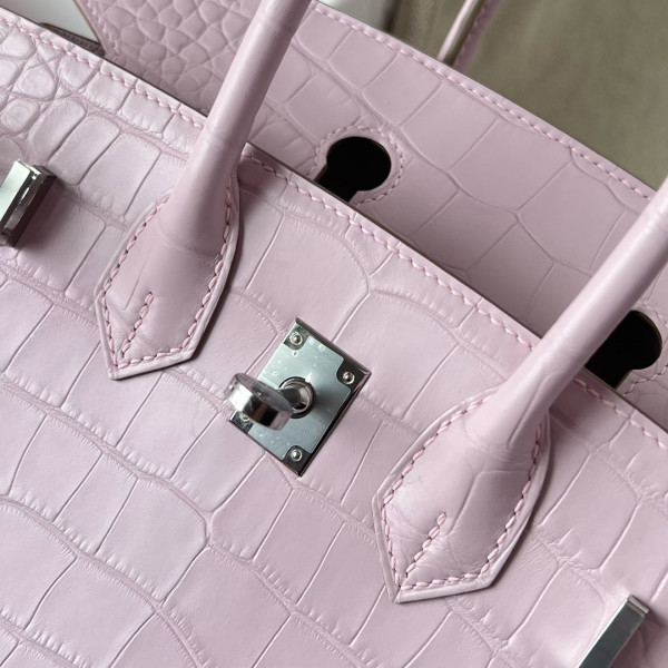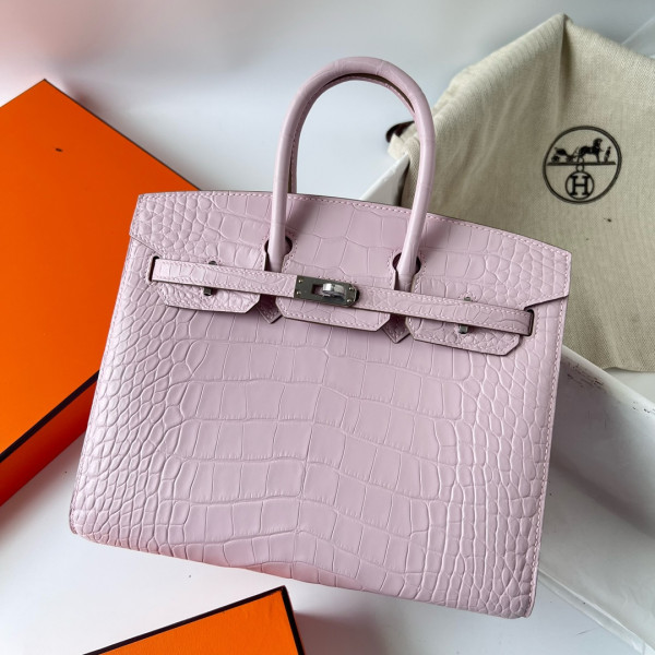 에르메스 버킨백25 핑크 은장 악어가죽