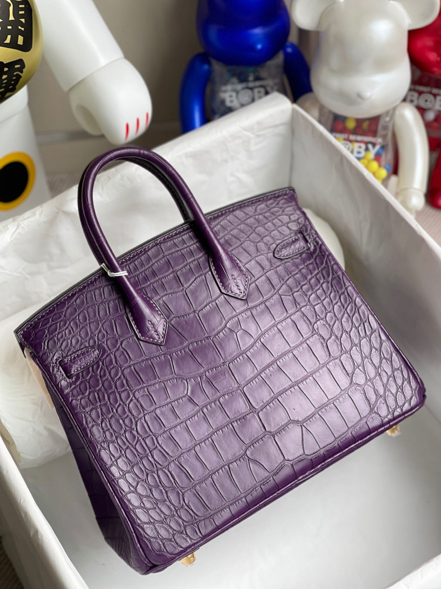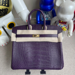 에르메스 버킨백25 퍼플 금장 악어가죽